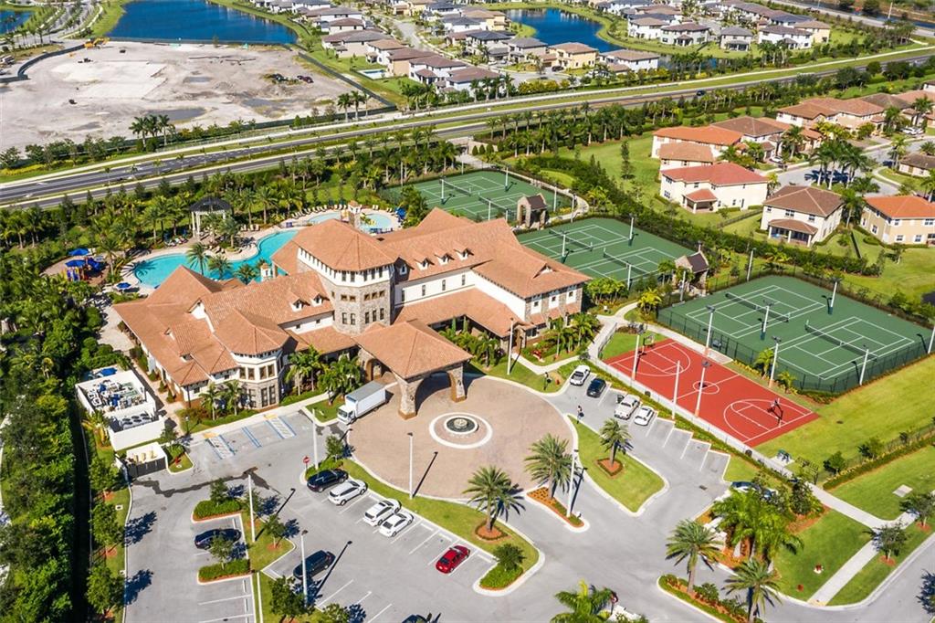 Stunning one-story, 4 bedroom, 3 bath, 3 car garage, MiraLago Estate Collection home nestled on a small cul-de-sac on large pie shaped 154’ lakefront lot. Main living areas and master bedroom/sitting area showcase beautiful hardwood floors, crown molding and lake views. Gourmet kitchen with s/s appliances, gas double oven, upgraded cabinets & granite. Covered patio extended with travertine marble and retractable screen. Plenty of space for a pool. Impact windows & doors. Upgrades galore including window treatments, elegant lighting fixtures, ceiling fans, portable generator with house hook-up, tank less water heater, surround sound wiring and tons of storage with custom built-in garage cabinets & all bedroom closets. HOA includes all lawn and landscaping maintenance. A must see!