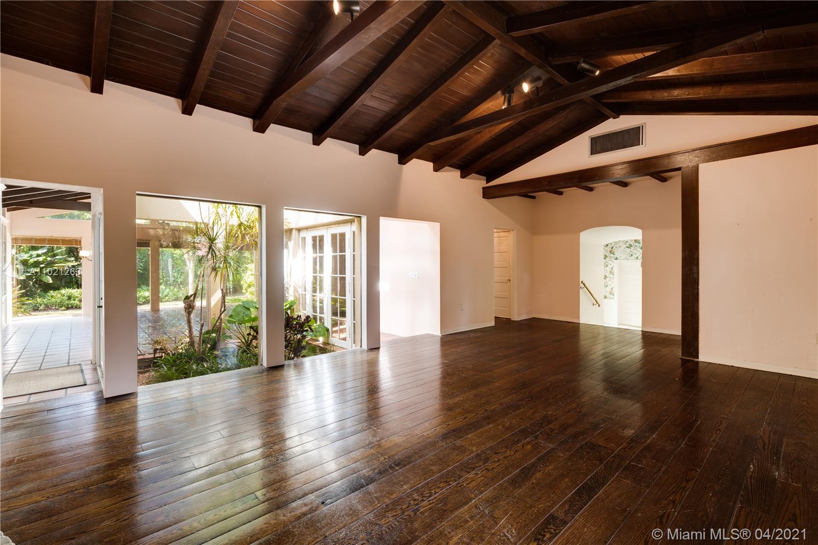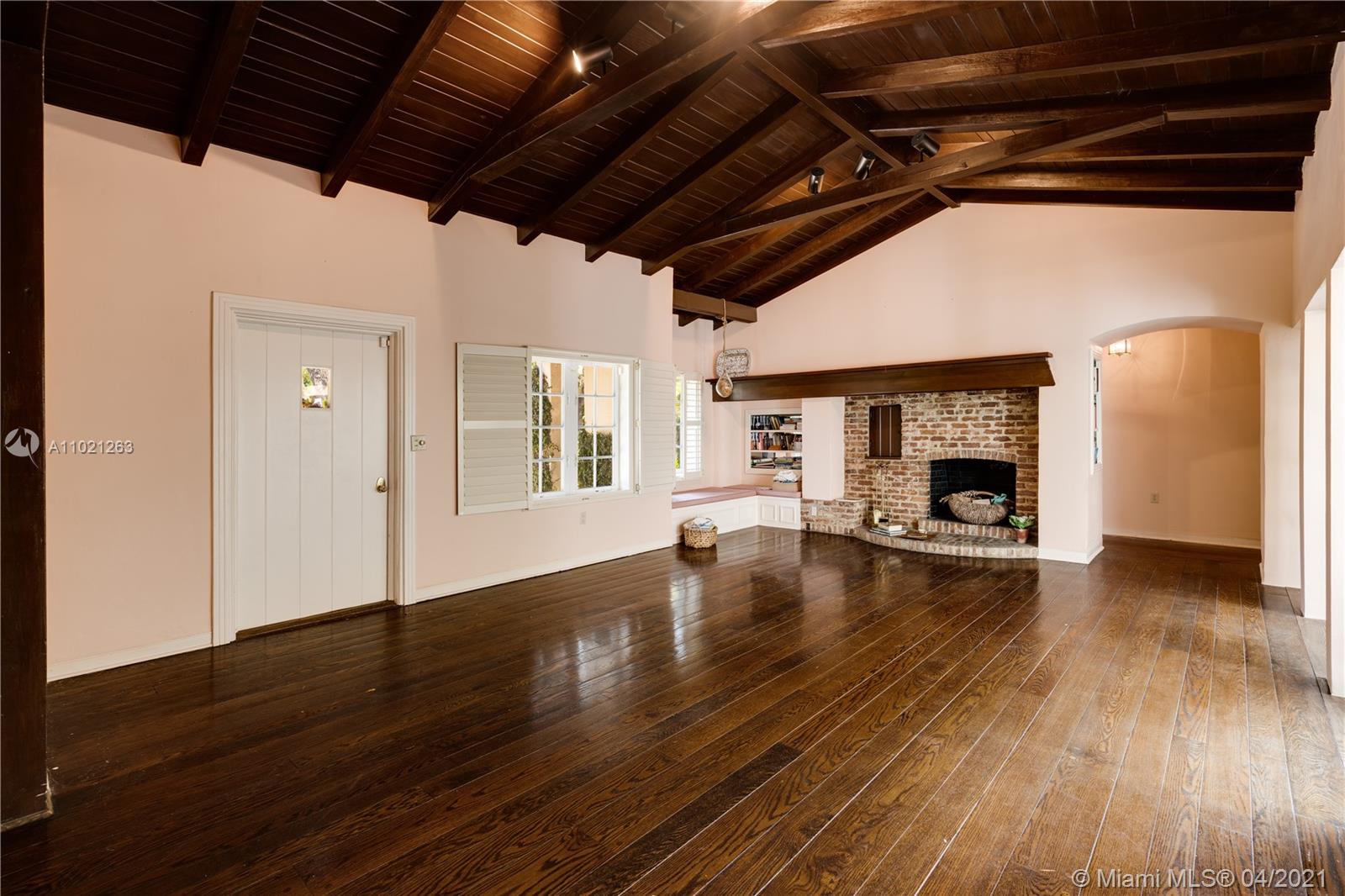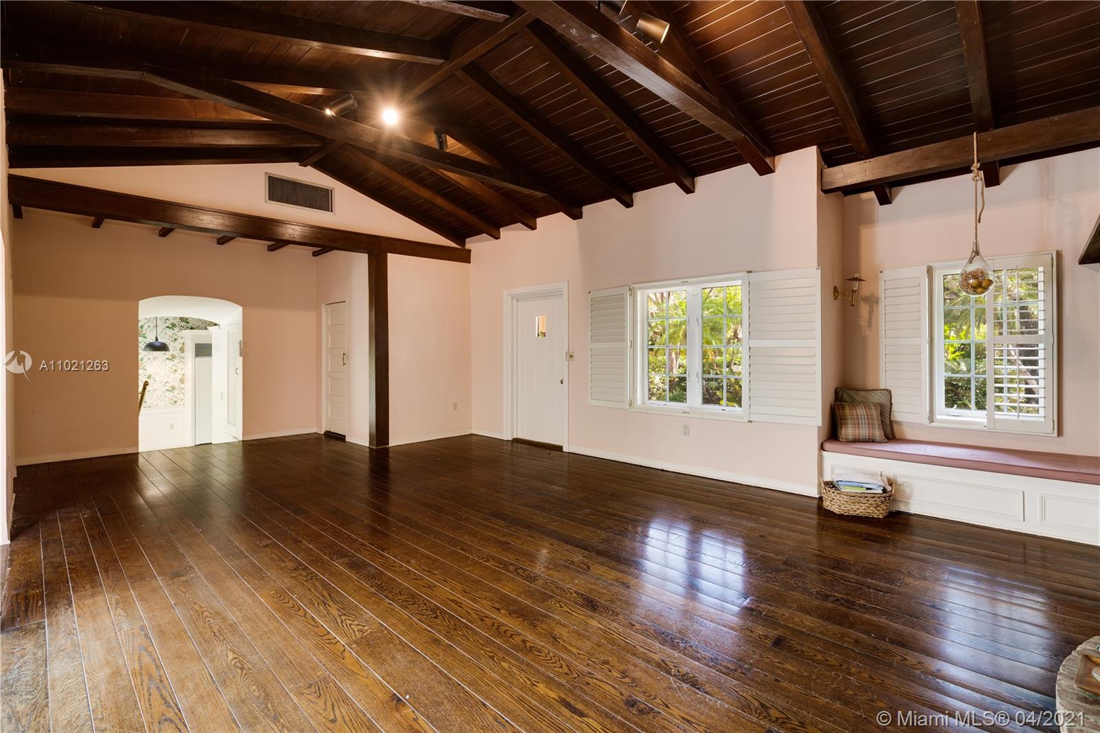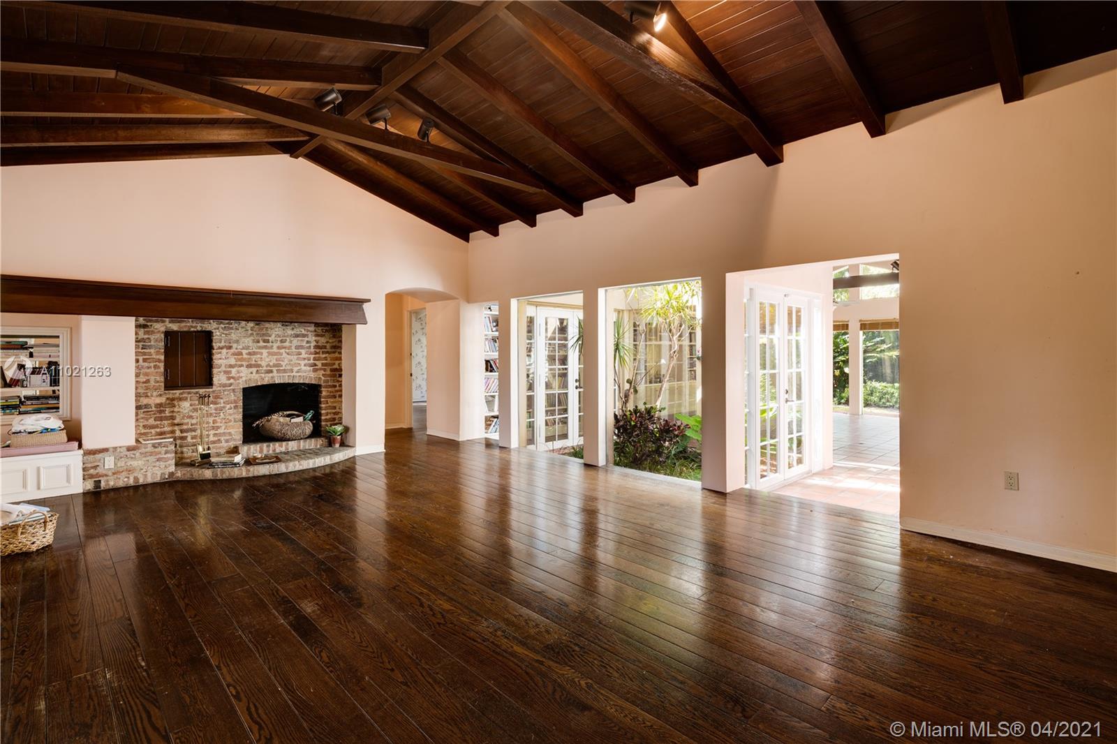 On one of Coral Gables' most desirable streets, Alhambra Court, this vintage 1938 3 bedroom 2 bath 2612 square foot home on a 15,067 square foot lot offers charm, character and top location. This home sits across the street from golf course fronting homes and has a view from the kitchen window of the majestic Biltmore Hotel tower. Many dramatic architectural features such as open beamed, cathedral style ceilings, massive brick fireplace in the living room, atrium filled with tropical plants between main living room and a huge family room, wide plank oak floors and more. Modern kitchen, impact windows. While there are 3 bedrooms none really function as a true master bedroom suite but, with the large lot there should be plenty of room for a suitable master bedroom suite to be added. Garage