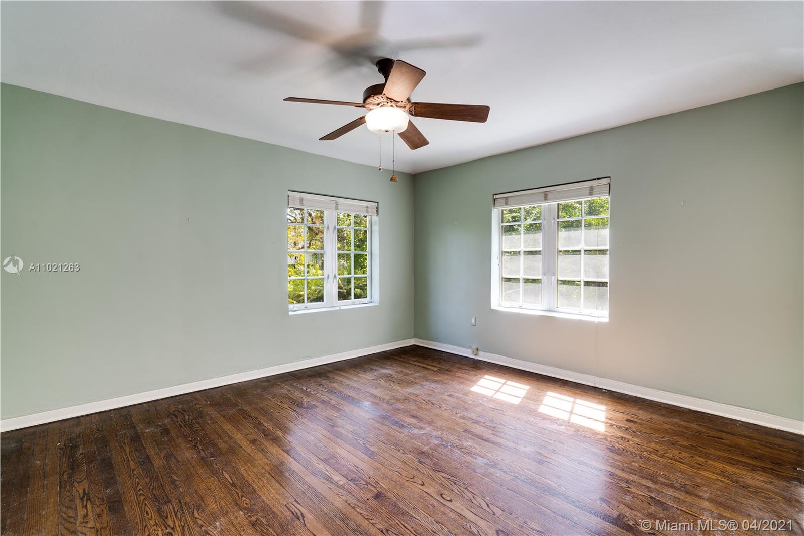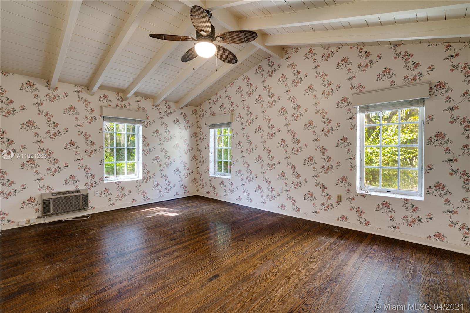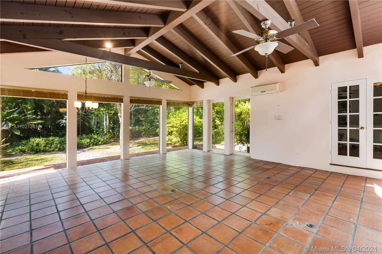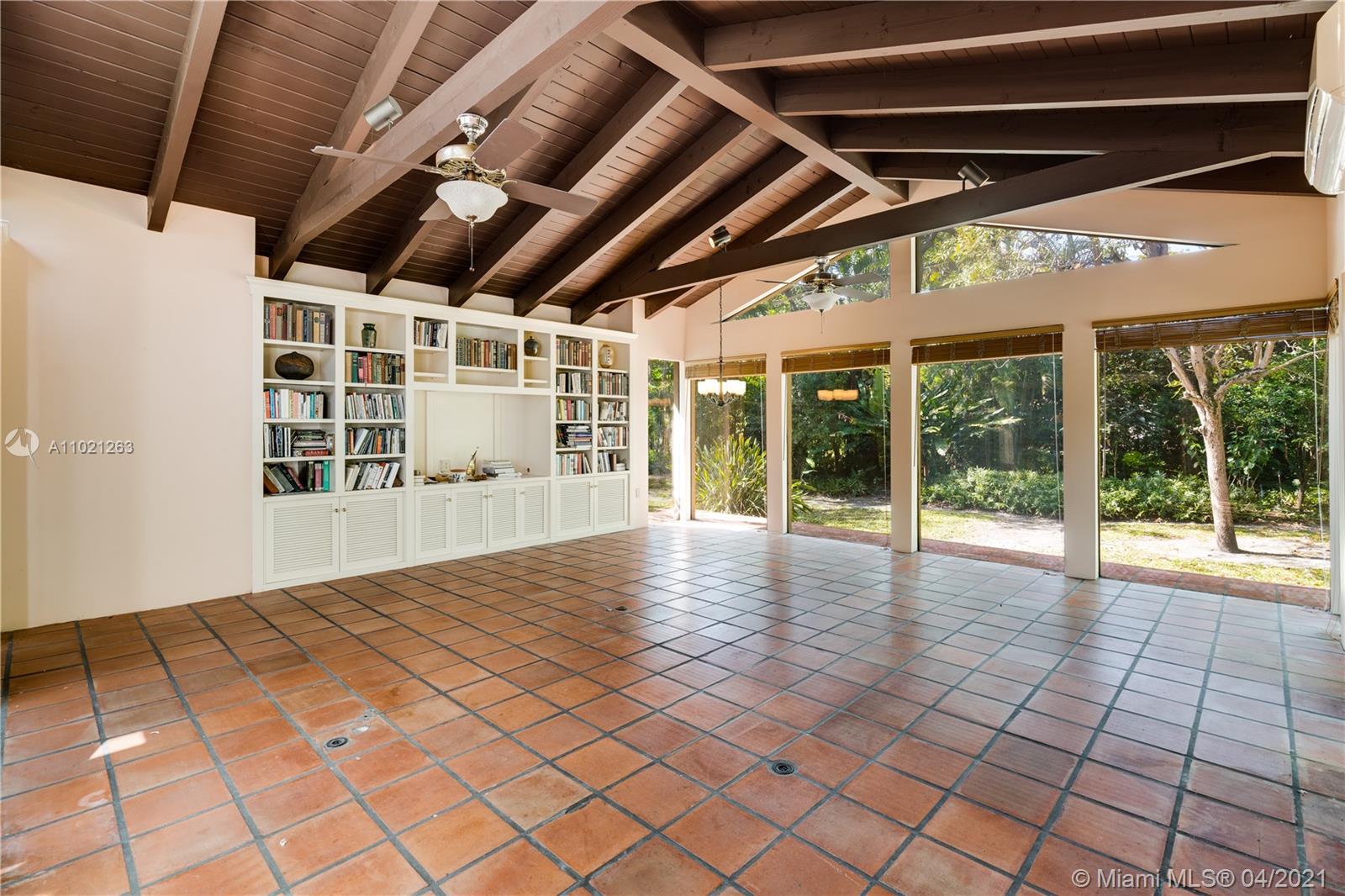 On one of Coral Gables' most desirable streets, Alhambra Court, this vintage 1938 3 bedroom 2 bath 2612 square foot home on a 15,067 square foot lot offers charm, character and top location. This home sits across the street from golf course fronting homes and has a view from the kitchen window of the majestic Biltmore Hotel tower. Many dramatic architectural features such as open beamed, cathedral style ceilings, massive brick fireplace in the living room, atrium filled with tropical plants between main living room and a huge family room, wide plank oak floors and more. Modern kitchen, impact windows. While there are 3 bedrooms none really function as a true master bedroom suite but, with the large lot there should be plenty of room for a suitable master bedroom suite to be added. Garage