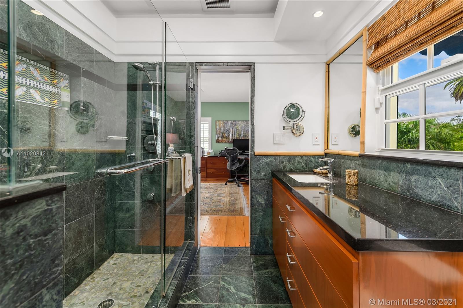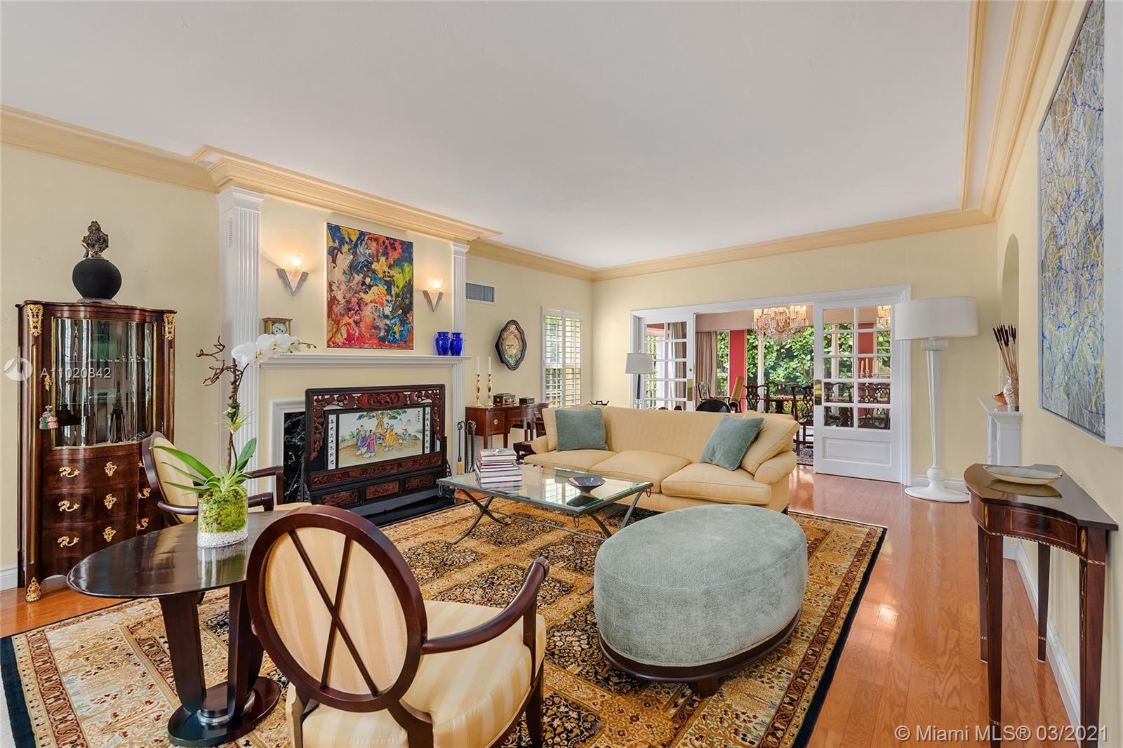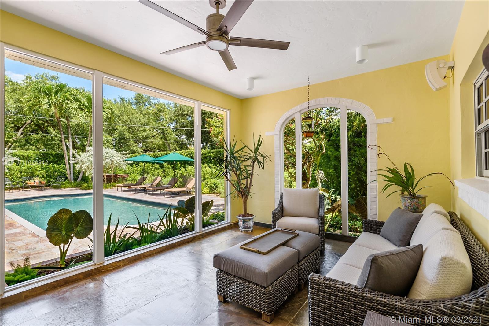 Enjoy living in your own private oasis located on a corner lot on the prestigious & gated Sunset Island III. Private & lushly landscaped w/ an oversized pool, separate guest room & renovated cabana bathroom. This 5 bed, 4.5 bath home sits on one of the largest corner interior lots (12,448 sqft) on Sunset III & IV. Property includes a fireplace & exquisite French sliding doors lead into private formal dining. Open kitchen complete w/ Sub Zero fridge,2 Miele dishwashers, Miele dual ovens, built in warming drawer, dual-zone wine cooler & gas GE Monogram 4 burner cooktop w/ griddle. The master bedroom suite boasts soaring ceilings, an oversized walk-in closet, marble double vanity bathroom. Front circular driveway and side carport covered driveway, 2 car garage and whole house generator.