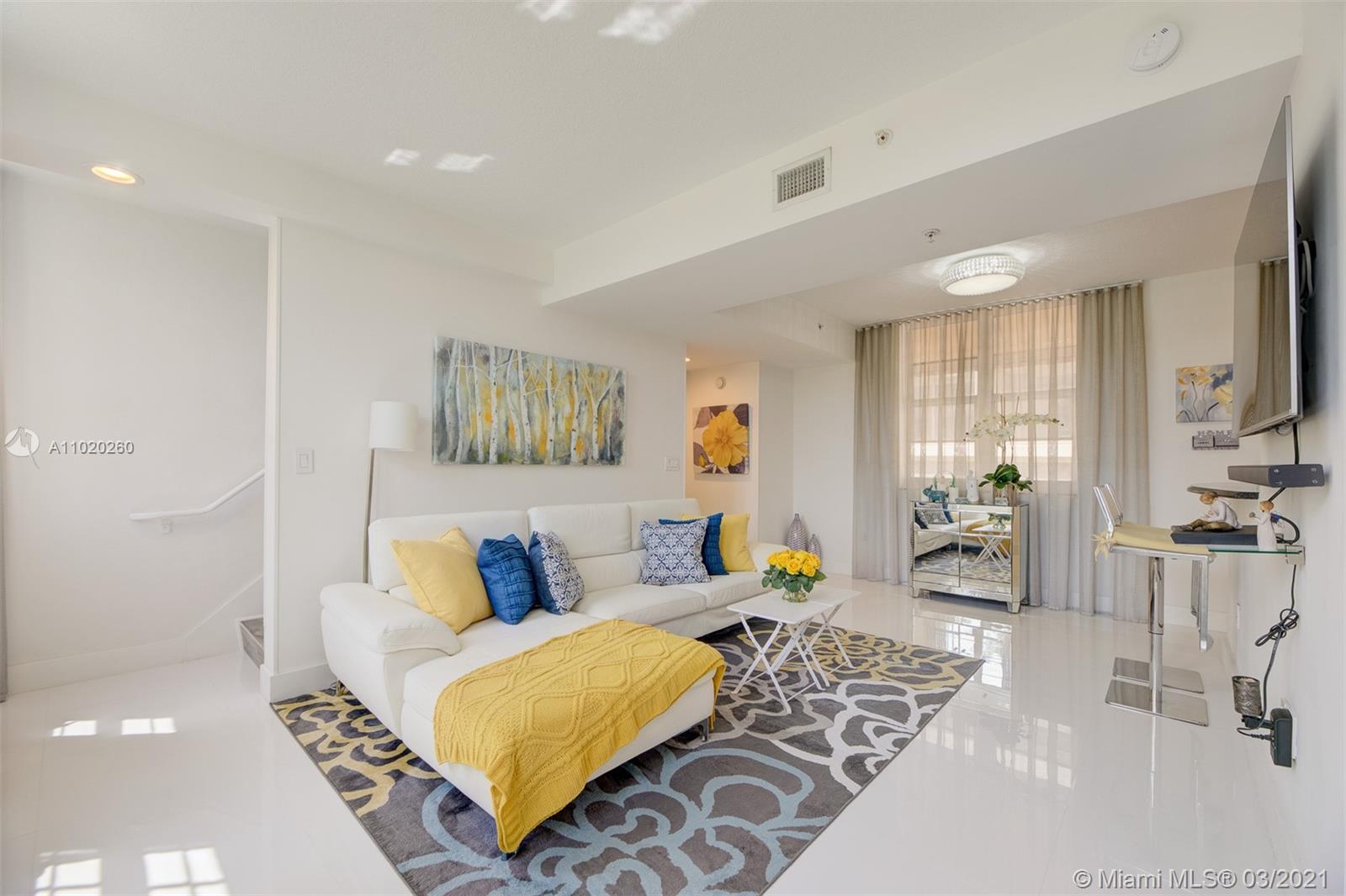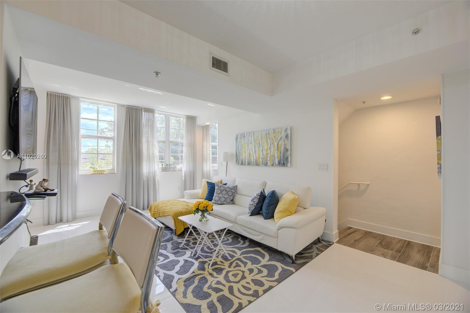 Gorgeous 3 story turnkey townhouse with a feeling of a Single Family Home with the privacy and security of a condominium, located within walking distance of the heart of Coral Gables (Miami)"Miracle Mile" sought after dining and shopping experiences. This home includes luxurious designed interior, stainless steel appliances, kitchen granite counter tops, beautiful tile floors, hurricane impact windows, washer and dryer combo, private garage. Monthly association fee includes water, wireless internet, TV cable, roof repairs, insurance, trash, gym, clubhouse, business center, conference room, 24-hour security guard surveillance throughout the property, Sundeck with lush tropical and concierge services. This community has reserves. No Assessments.
