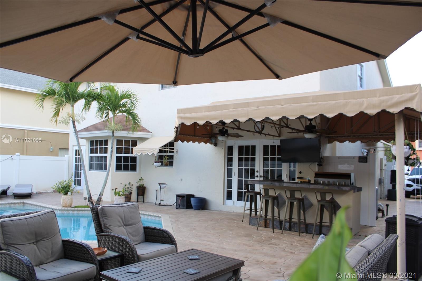 Dreamy two-story home centrally located within a quiet community in Pembroke Pines. Near Pembroke Lakes Mall, the Shops at Pembroke Gardens and close access to all major highways (I-95, turnpike, 826 and I-75). This beautiful home comes equipped with impact windows,new vinyl wood flooring throughout the second floor and stairs, a new 5 ton Rheem AC system and Nest thermostat, Ring camera/security system, new Bar/Grill for the hot summers by the pool, which was resurfaced 2 years ago along with color changing LED lights. The rear deck and front driveway were painted earlier this year in January and the house was freshly painted just last month. Open House this Saturday from 11am-2pm Agents submit a DU approval with your offers. POF or DU (with proof of down payment/closing cost suggested