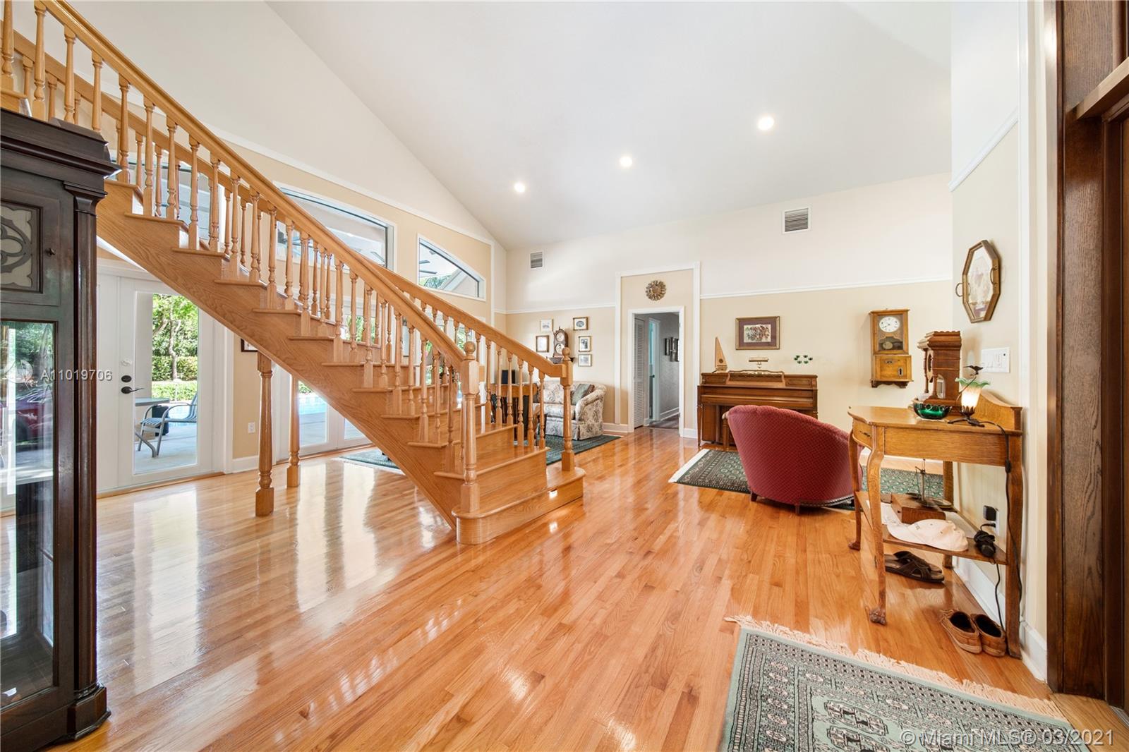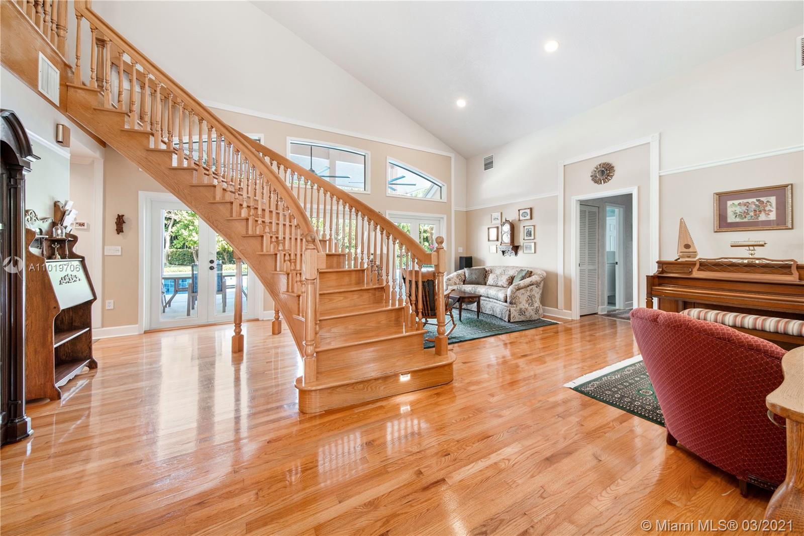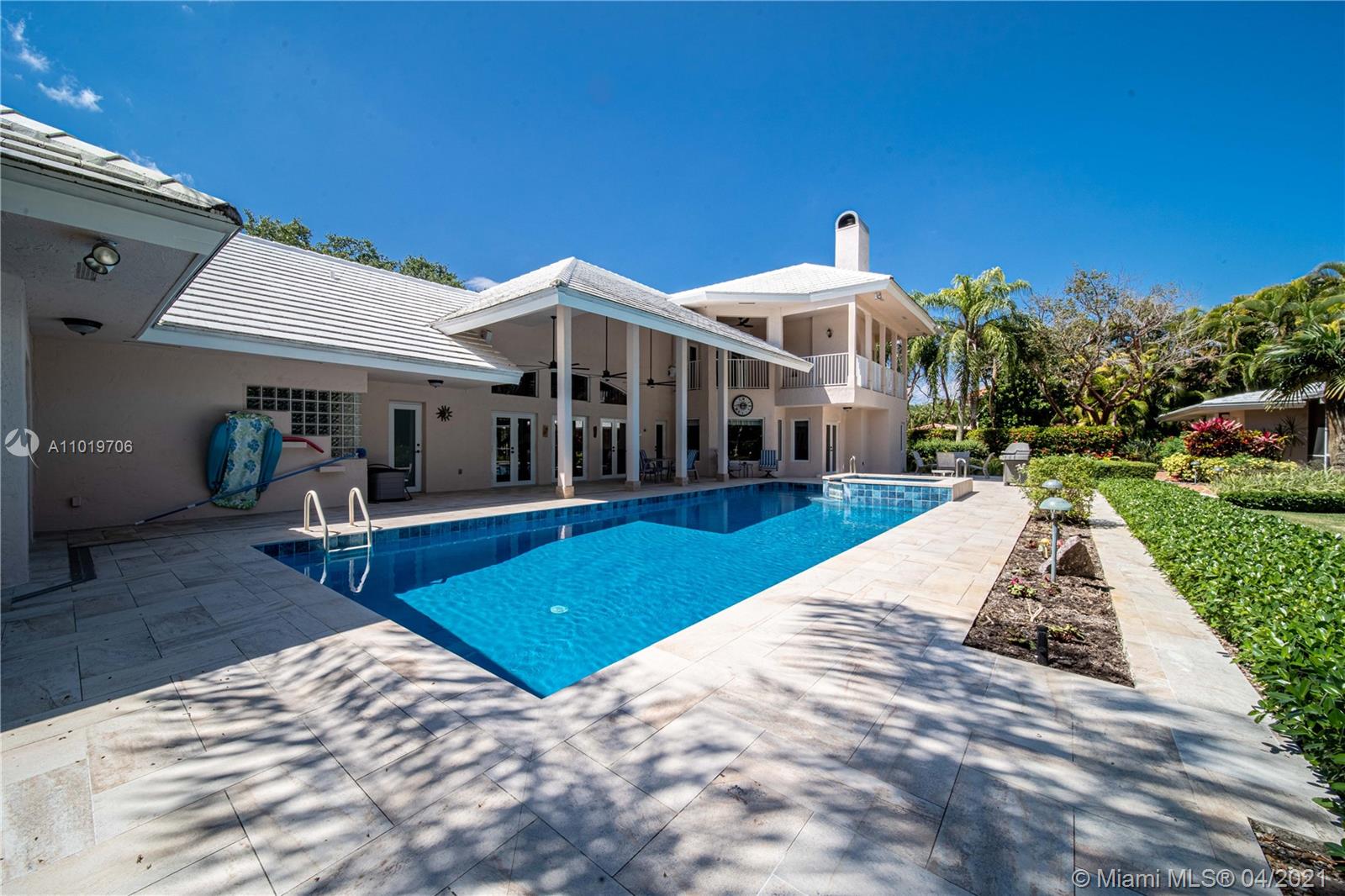 **THE ONLY HOME FOR SALE IN PINECREST WITH A COTTAGE** Come see this wonderful home, just shy of a Builder’s Acre (plus 2car garage) and located away from any main streets. Upon entering this home into its expansive Great Room, you are greeted with a grand staircase that leads to the Master Bedroom upstairs and its enormous seating area, fireplace, wrap-around balcony, and mezzanine office space. On the first floor, enjoy a split floor plan (3+1), formal dining room and beautifully open kitchen that flows into a breakfast area and family room. Lots of natural light and hard wood floors make this home large and cozy at the same time. Step outside into the open yard, pool, jacuzzi, cabana bath, and guest cottage – fully permitted 1/1, full kitchen, living room, fireplace and screened porch.