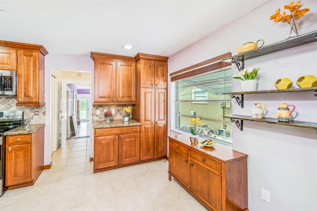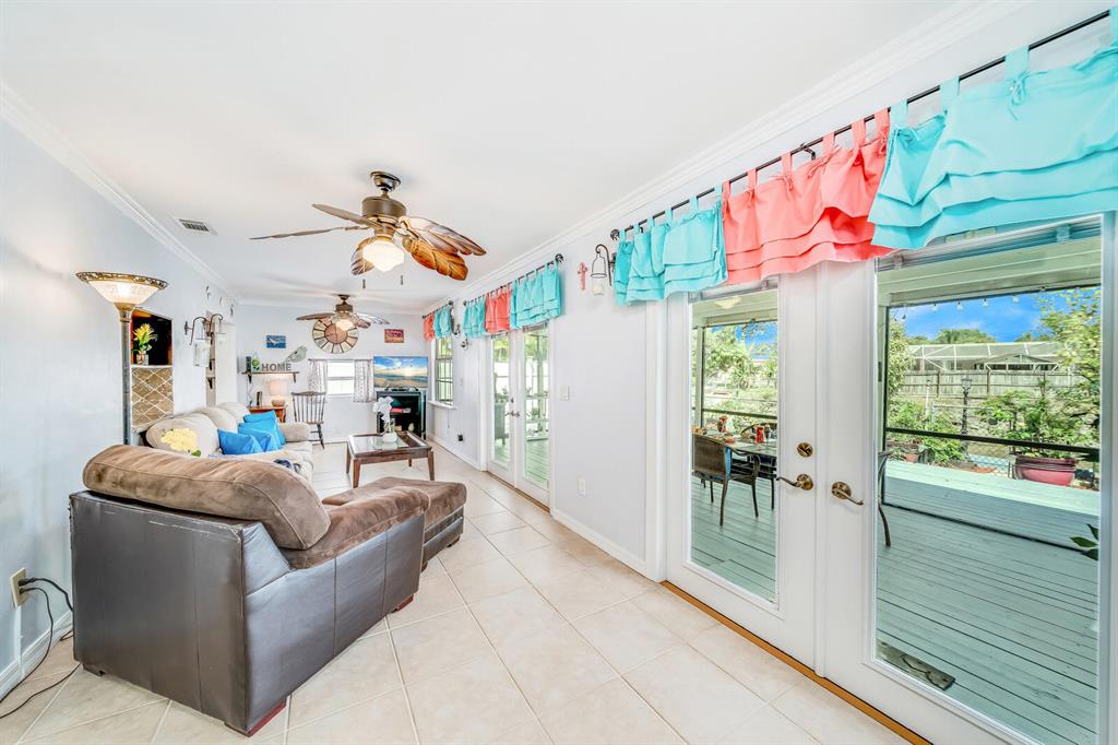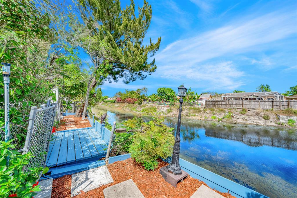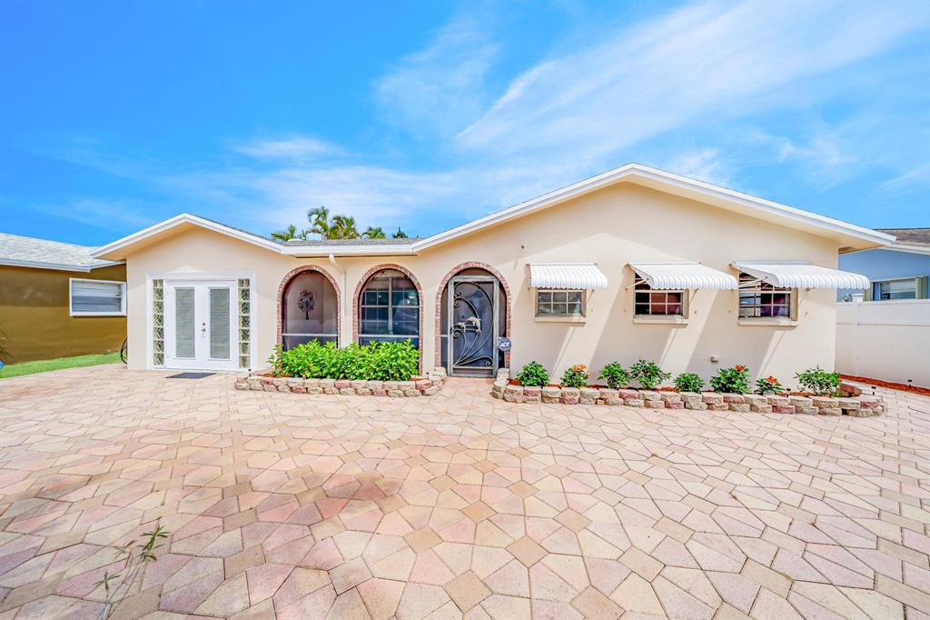 WOW!! Open and Spacious 4 bedroom waterfront home in Sandalfoot Cove w/Paver circular driveway that fits 4 SUVs plus more cars! Tile throughout/tons of crown molding, this home features a large living room, dining room and a family room as well. Updated kitchen w/granite countertops & tumbled marble backsplash, wood cabinets with under cabinet lighting, Frigidaire SS Appliances including a Fridge, electric glass top range, dishwasher and microwave, recessed lighting & a pass thru to family room. Both bathrooms are updated. Bedroom # 4 has a separate entry from the front of the house w/double French doors with blinds in glass, great for a home business. Family Room also has 2 double French doors with blinds in glass entrance to back yard. The backyard is a tropical oasis and includes an