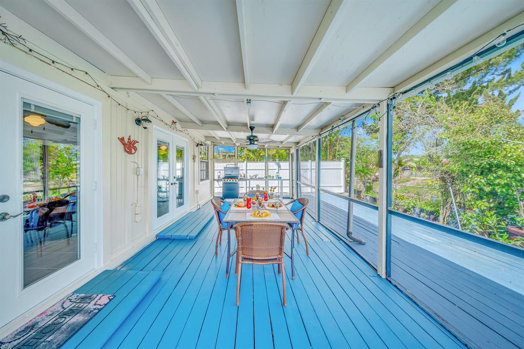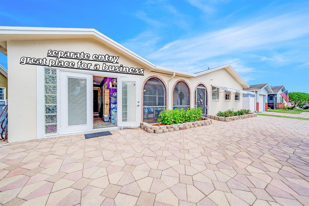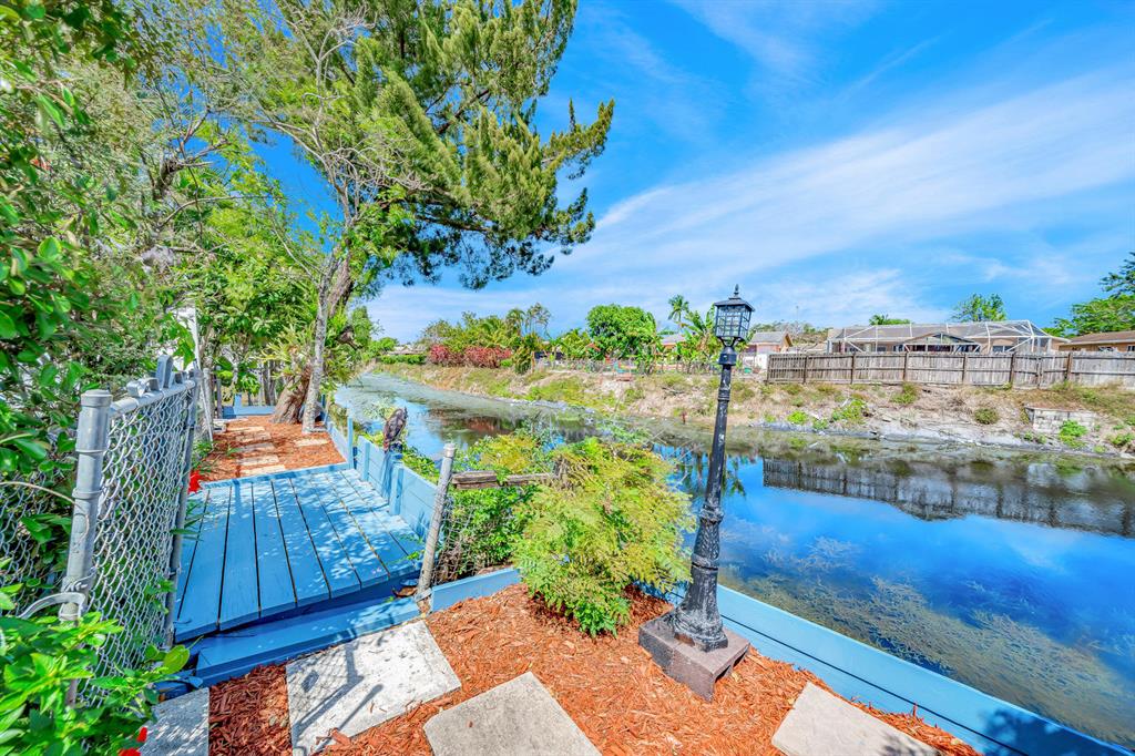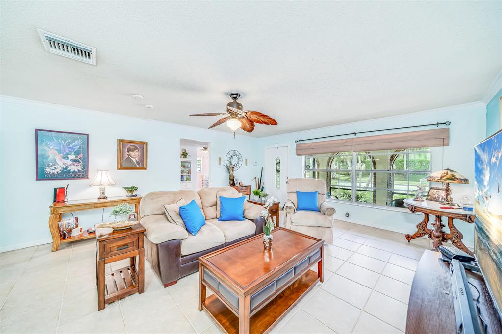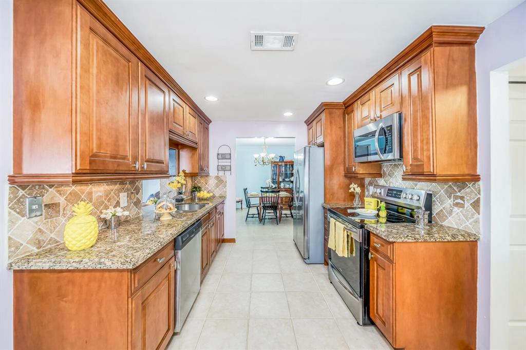 WOW!! Open and Spacious 4 bedroom waterfront home in Sandalfoot Cove w/Paver circular driveway that fits 4 SUVs plus more cars! Tile throughout/tons of crown molding, this home features a large living room, dining room and a family room as well. Updated kitchen w/granite countertops & tumbled marble backsplash, wood cabinets with under cabinet lighting, Frigidaire SS Appliances including a Fridge, electric glass top range, dishwasher and microwave, recessed lighting & a pass thru to family room. Both bathrooms are updated. Bedroom # 4 has a separate entry from the front of the house w/double French doors with blinds in glass, great for a home business. Family Room also has 2 double French doors with blinds in glass entrance to back yard. The backyard is a tropical oasis and includes an