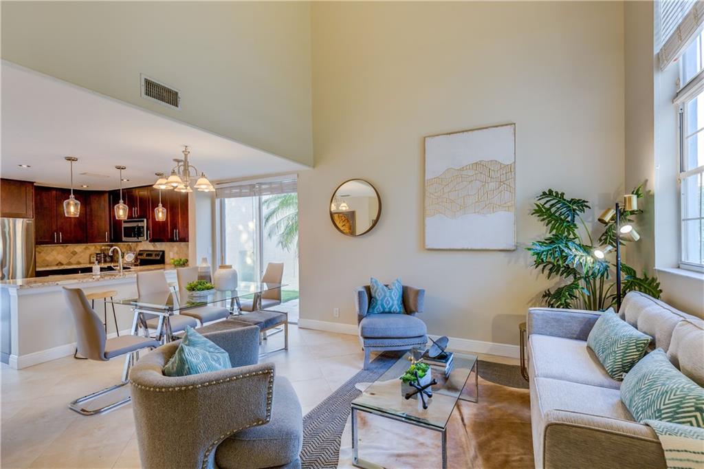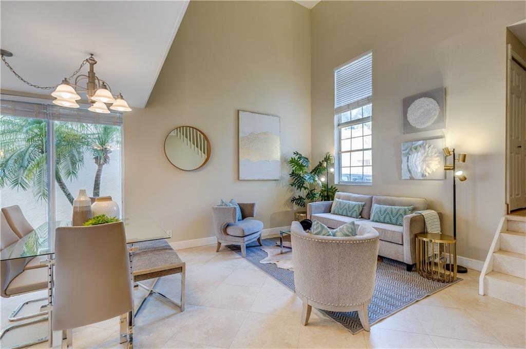 CENTRAL PARK PLACE SINGLE FAMILY HOME IN QUATRAINE V. THIS BEAUTIFUL 3/2.5 HOME W/ SOARING CEILINGS IN LIV/DIN RM OF OVER 17' HIGH. REMODELED KITCHEN OPENED TO DINING RM W/42" HARDWOOD CABINETS, SS APPLS, GRANITE COUNTER TOPS, FULL BACKSPLASH & BREALFAST BAR. UPDATED MASTER BATH & NEW VANITIES IN 2ND & HALF BATHS. 1ST FLOOR ALL TILE & BRAND NEW VINYL FLOORING ON STAIRCASE & 2ND FLOOR; NO CARPET ANYWHERE. A ZERO LOT LINE COMMUNITY BUT THIS HOME HAS AN OVERSIZED BACK YD W/ LG 27'X20' PAVER PATIO & ARTIFICIAL EVERGREEN GRASS BORDERS & SIDE YD. FRONT BEDROOM W/ BUILDER OPTION OF BONUS RM OR LG WALK-IN CLOSET. HURRICANE SHUTTERS & 3 PARKING SPACES INCLUDING GARAGE. GUEST PARKING RIGHT OUTSIDE YOUR DOOR IN LG CUL-DE-SAC W/ GREEN SPACE. PET FRIENDLY, HOA W/ APPR REQ. AS IS SALE W/RIGHT TO INSPECT