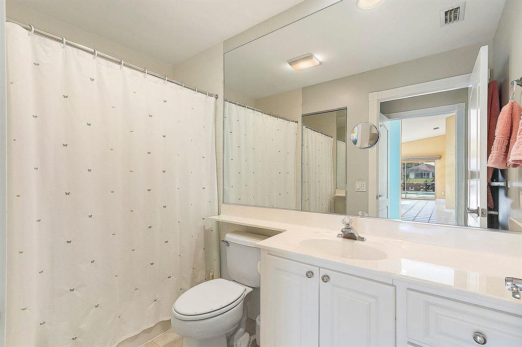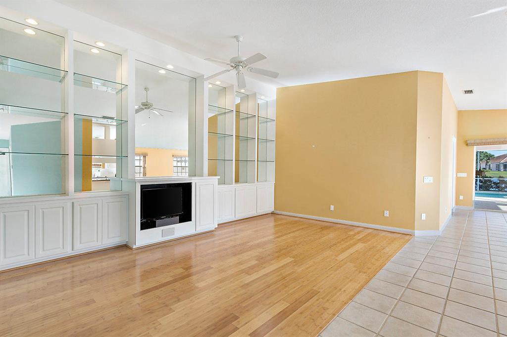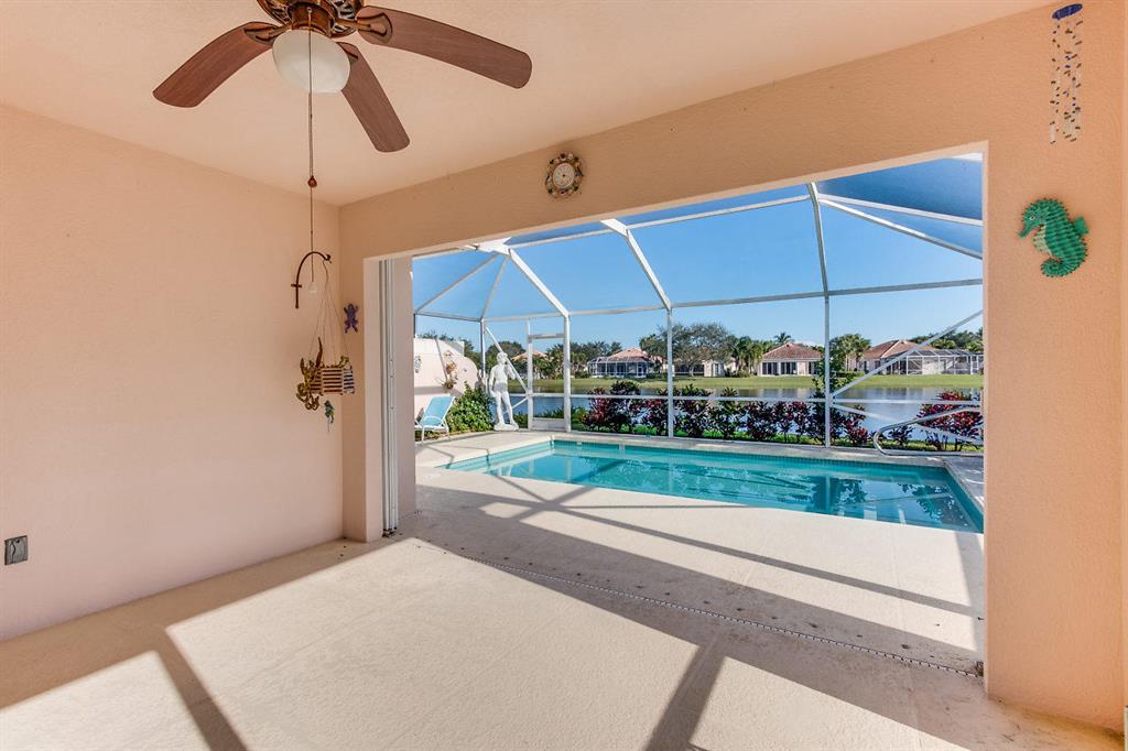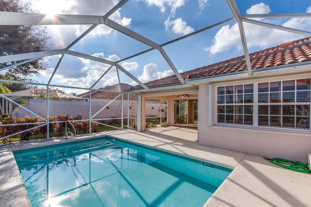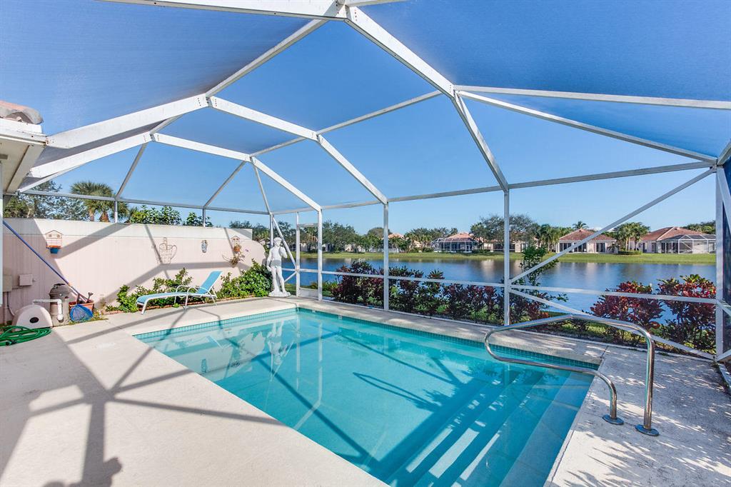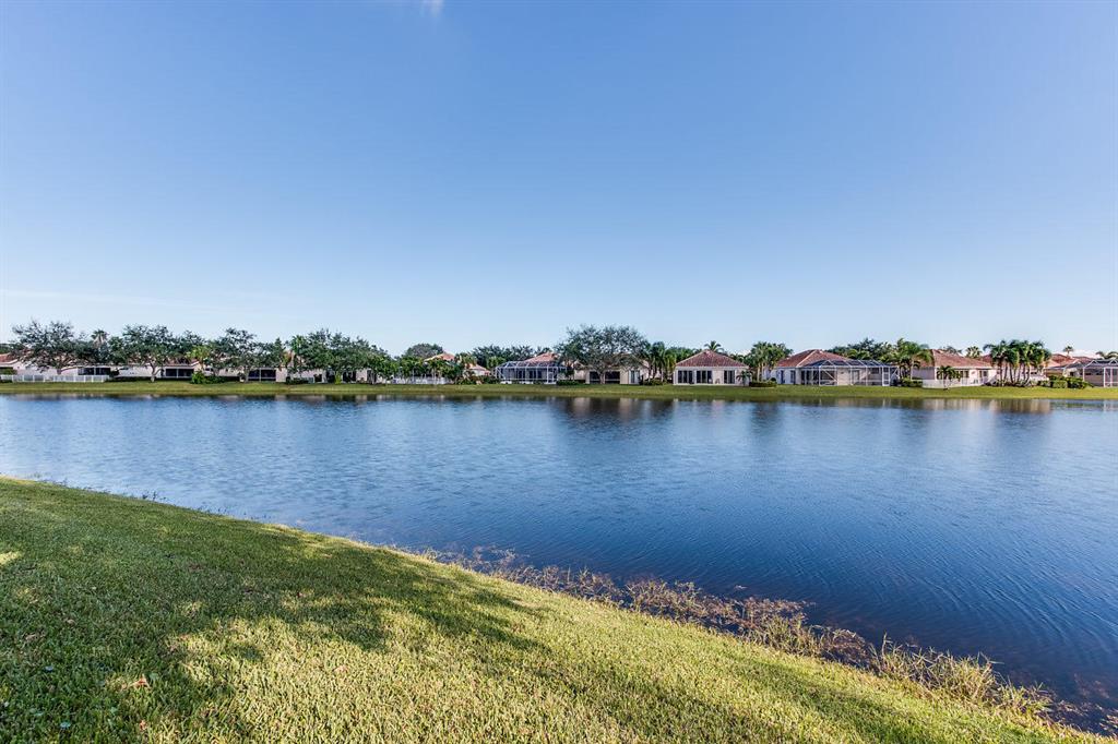 Welcome to the beautifully landscaped and gated community of River Walk! Upgrades in this spacious 2/2/2 Villa include: Screened in private pool with BEAUTIFUL lake view and covered patio. Updated kitchen with solid wood cabinetry, granite countertops and stainless steal appliances. Bamboo floors. Updated fans/fixtures. Separate laundry room with newer washer/dryer. Newer A/C & hot water heater. Accordion hurricane shutters for easy hurricane preparation. Conventionally located next to the Turnpike and 441. Only 10 minutes to downtown WPB and 10 minutes away from the Wellington Mall. Low HOA fee that includes: 24 hour manned gate. Nature trail for walking, jogging or riding bikes. Tennis courts. Two BIG pools with jacuzzi and outdoor showers. River Walk also has its very (See Supplement)