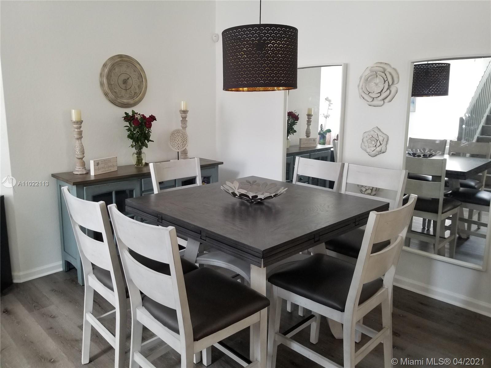 Beautiful corner unit $30K in upgrades. Luxury vinyl plank floors, water proof. 3 full baths. Keyless entry, upgraded kitchen. Garage has being converted to a 4th bedroom, can easily can be converted as garage again. Bright and modern look inside ,kids play ground and outdoor gym. Great location near Turnpike & Palmetto Expressways, great schools, access to a Clubhouse with pool, gym, Tennis, basket courts. Close to many Doral Public Parks, Doral Legacy Park, Doral Central Park, Doral Morgan Levy Park , and more . Doral is a great place to live close to everything and secure neighborhood. Owner occupied.24hr showing notice.Sold As is No subject to Appraisal No subject to Inspection . Showing Open House Sunday April 25th 1-4pm.