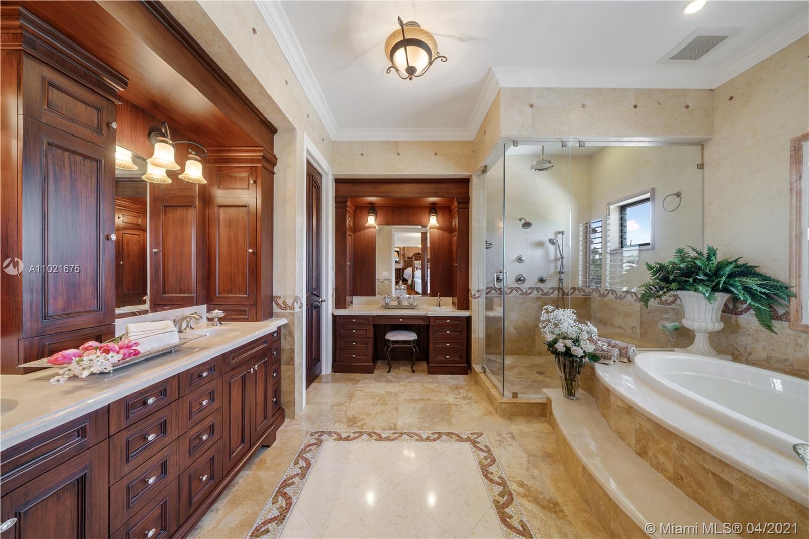 Welcome to Boater's Paradise! This elegant waterfront home in the exclusive "Gables by the Sea" gated community will bring you peace, serenity and wonderful outdoor living space that will feel like a vacation every day. Enjoy a relaxing boating lifestyle with a 75-foot private dock and a boat lift NO bridges just a few minutes sailing to Biscayne Bay. This is an ultimate endless entertainment home with a Pool/Spa, BBQ area and Game/TV rooms surround by a well-manicured landscape yard. The home features the highest quality of marble finishes and hardwood floors, hurricane impact windows and doors and a complete video surveillance system. Spacious floor plans with 5 beds + 6.5 baths and a plenty of storage. Close proximity to best public and private schools, parks, restaurants and malls.