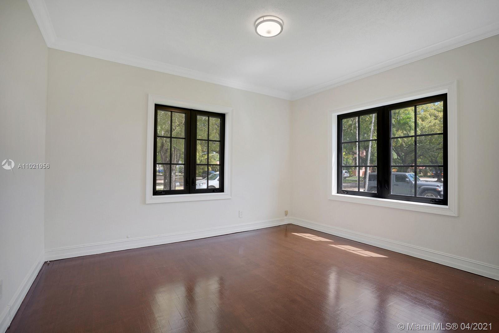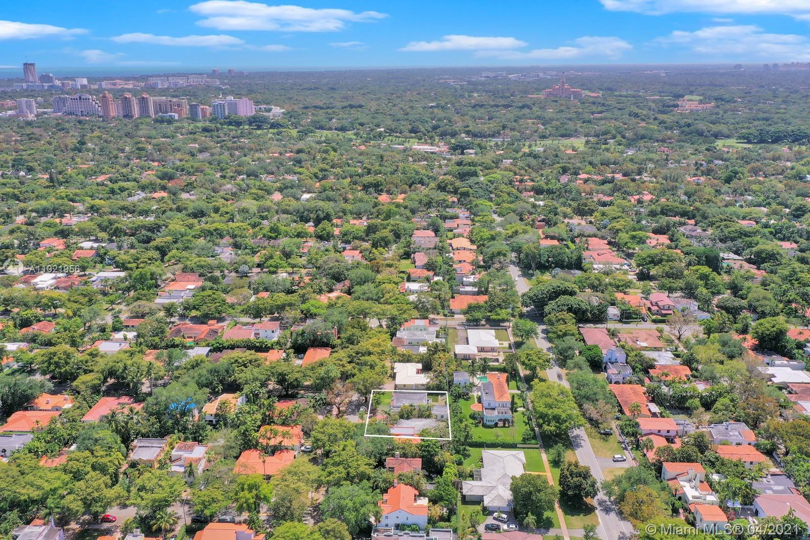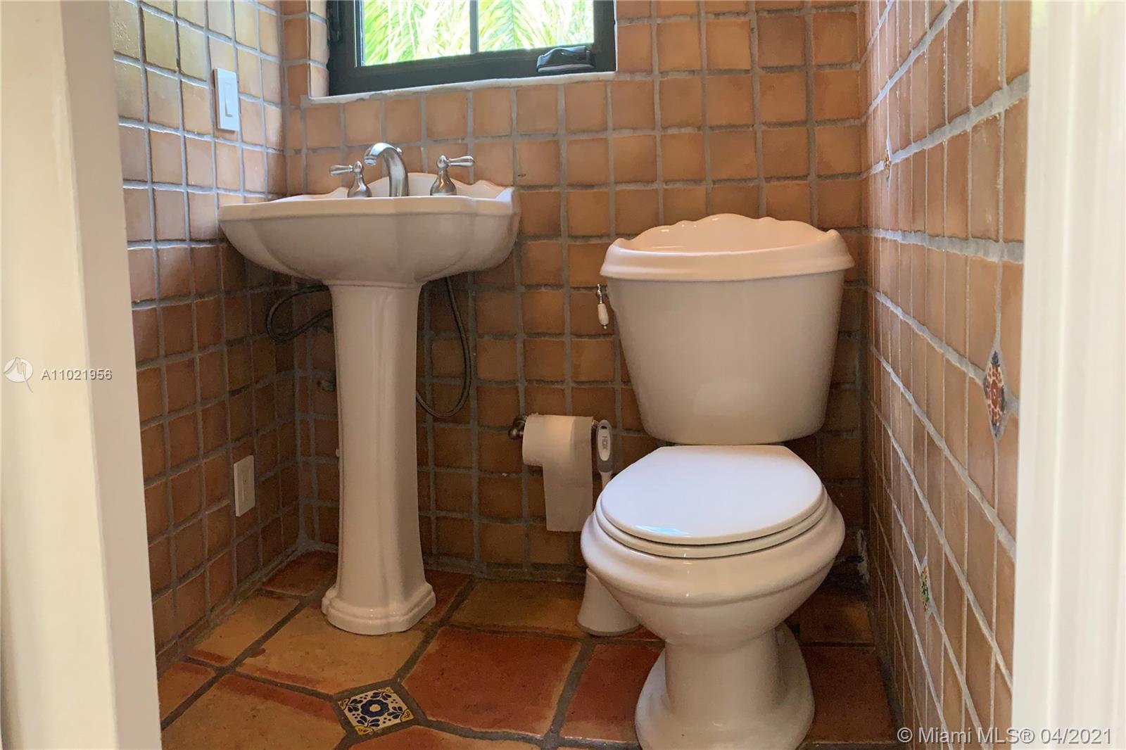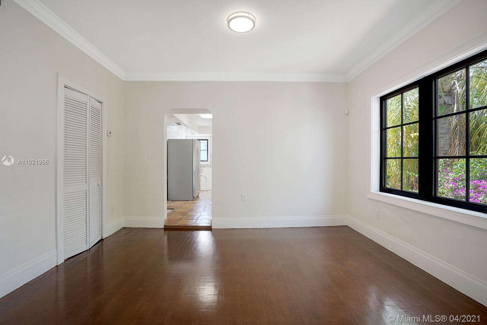 Stunning traditional Coral Gables, Spanish-style home. Consists of a 2-bedroom, 1.5-bath main house with foyer and office space that opens to the back yard; plus, a separate 1-bedroom, 1-bath guest house with kitchen area. Floors are combination of Spanish terracotta with mosaic inserts and wood floors, working fireplace, impact windows Gated carport. New septic system. Large side yards occupies half the lot. New kitchens and laundry room appliances will be needed as old ones have been removed.