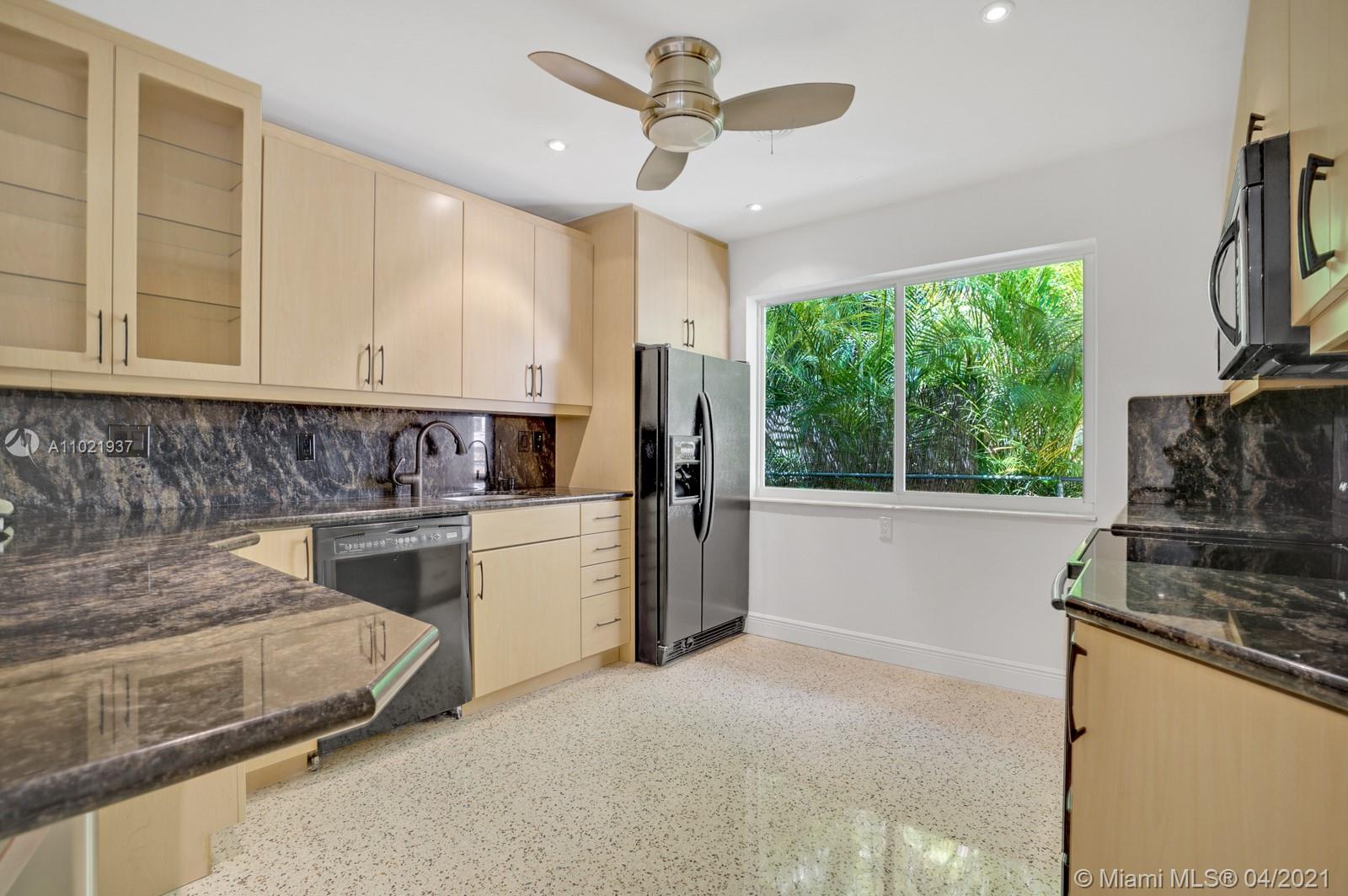 Beautiful one-story 3 bedroom, 2 bath home on quiet tree-canopied street in Coral Gables. Recently polished mint terrazo flooring throughout, updated open kitchen and bathrooms, impact glass windows, doors and AC system. One car-garage with extra overhead storage. Move-in ready condition!