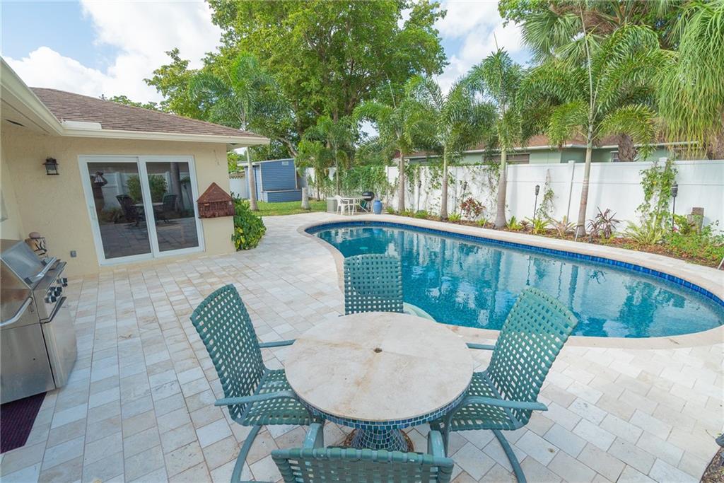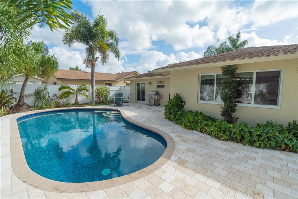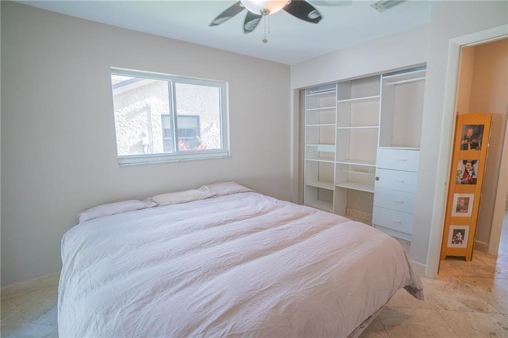 Great Floor Plan with plenty of room to grow in this lovely 4 bedroom home. Impact Windows, Marble Flooring throughout, updated Electrical, Updated AC System 4-5 years old). Fenced back yard with beautiful saltwater pool and outdoor space. The garage has been turned into a bit of a "man cave" but door still opens and can be put back to a garage easily, (also has a mini split system) Separate Laundry Room with additional storage. Ceilings have been finished, (no popcorn!) Recessed Lighting, California Closets in Master. Some updating needed in the kitchen but that is it. MUST WEAR A MASK TO ENTER HOME.