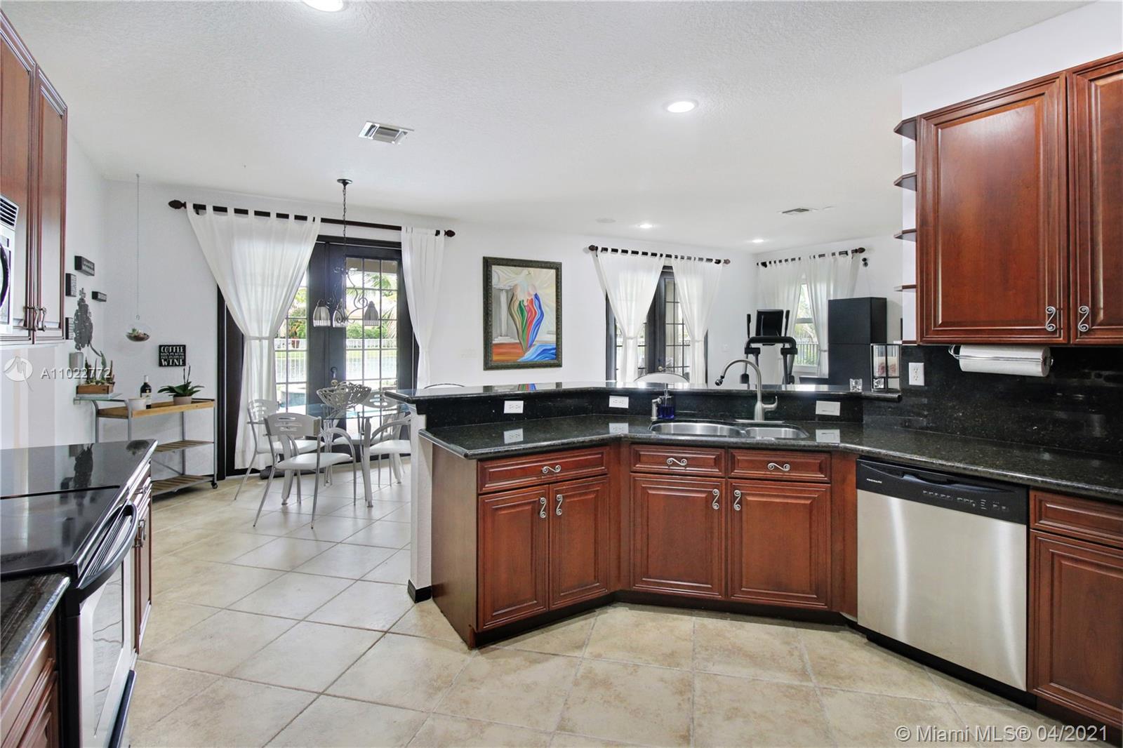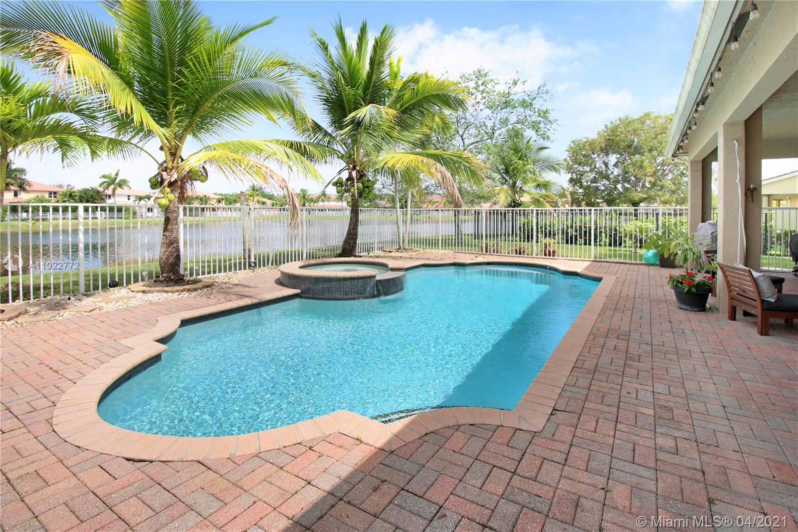 Stunting two-story Home lake front Pool Home. Former Model Home last house sold in the prestigious gated community of The Isles at Weston. 5 bedrooms plus Den, 4 bathrooms, 3 car garage, Great high ceiling entrance with amazing chandelier. High Impact Windows Second floor. One Room and Full bath in the first floor, 5th bedroom was converted on a office or possible nursery for the Master room. Fantastic view of the pool & lake from dining room, kitchen, eat-in & great room area! The quality of the design, attention to every detail in this residence are truly unparalleled. Kitchen with cherry cabinets & granite countertops open to great room with custom built-in bar with wine cellar. Enjoy the best of Florida lifestyle from the pool with jacuzzi overlooking the wide Lake