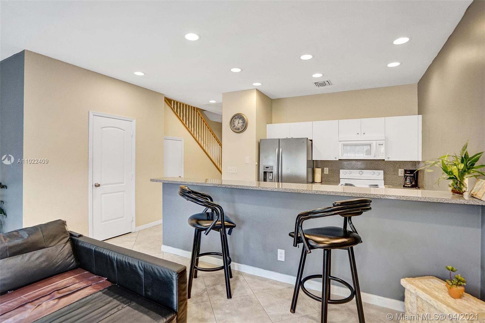 Spectacular well kept 3 bedroom 2.5 bath Townhome centrally located in Hollywood close to Young Circle and the beaches. Ceramic floors in the downstairs living area wood floors upstairs in bedrooms. Home features cozy private outdoor patio, large master bedroom w walk-in closets, 2nd & 3rd bedroom shares jack & Jill bathroom. AC unit replaced in 2019 property comes with 1 car garage + 3 designated parking spaces. Small 8 unit condo association great rental income can be used for Airbnb short term rental. Home features a laundry room with washer and dryer. Easy to show