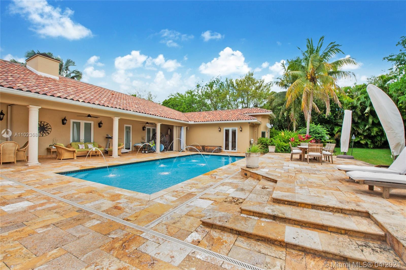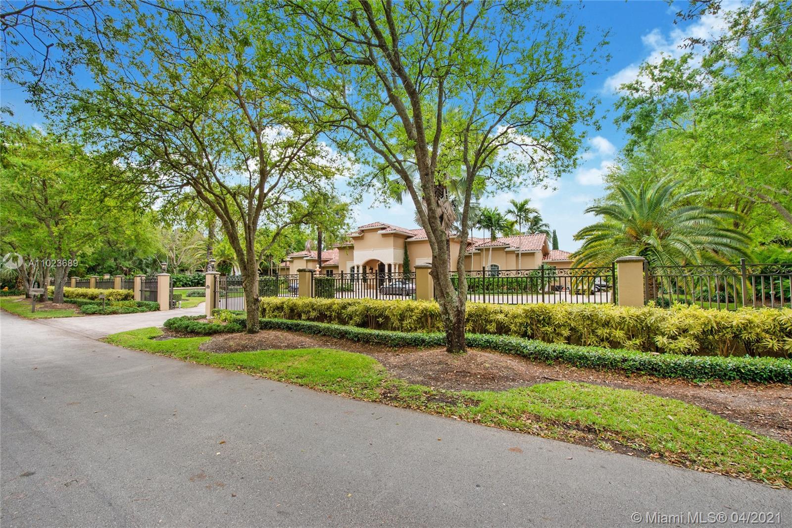 Exceptional location in coveted east Pinecrest. This walled and gated property sits on a quiet street, perfectly positioned on a deep and wide private lot. Motor court accommodates 10 cars. The house, with high ceilings and very large public spaces, encompasses a total of 7,657 sq.ft. Chefs kitchen, huge master suite, and all bedrooms en suite.Full size generator. Office/library with conference area and fireplace. Enormous Back yard allows for party of 150 guests, with both covered and open areas surrounding the pool. Detached guest studio apartment with private entrance. Beautiful Residence, Beautiful grounds, Beautiful Street. **Showings only on Mondays, Wednesdays and Saturdays. 24 Hour Notice please** Seize the moment, make this amazing property your home!