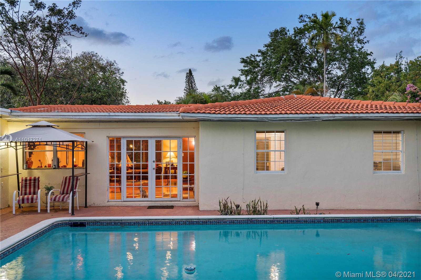 Charming house in desirable Miami Shores. Welcome to this 4 bedroom & 2 bath pool home. High ceilings greet you into the open living/dining room that overlooks the pool. Great layout wi/a dedicated room for an office. Master bathroom has been redone. Original Dade Pine Floors. Ample closets throughout. One car garage. Make this your dream home.