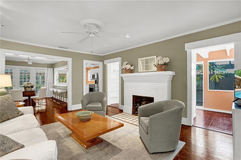 Ideally located in Prime Southeast Victoria Park, a lovingly restored Key West Charmer just seconds to Las Olas on a lushly and tropically landscaped street to street lot. Two Bedrooms, Two Baths, Living Room, Dining Room, Foyer and Office. Gorgeous hardwood flooring, crown molding and original architectural details throughout this classic Florida Home with multiple french doors, office with generous built-in storage & dual work-stations. Floor to ceiling windows flood this room with light! Updated kitchen with large bar opens to formal dining room with views to resort like pool area. Just outside, covered seating and built in bar for entertaining, expansive brick paver patio and walkways lead you to more secluded, beautifully landscaped patios in the garden and rear entrance to property.