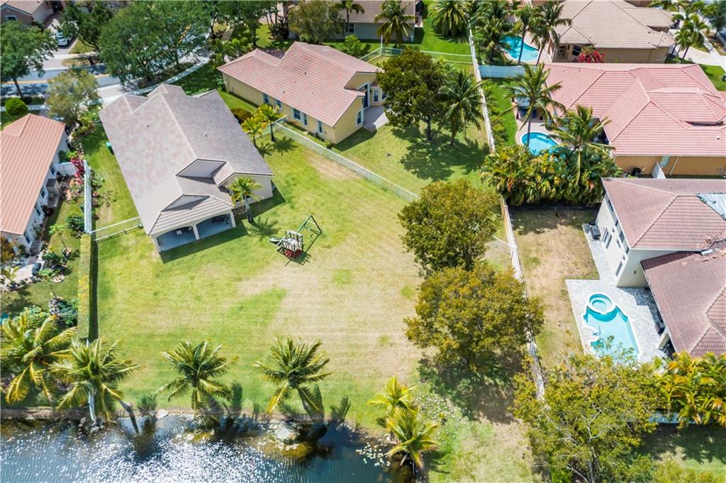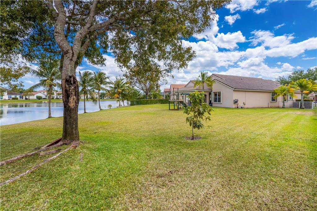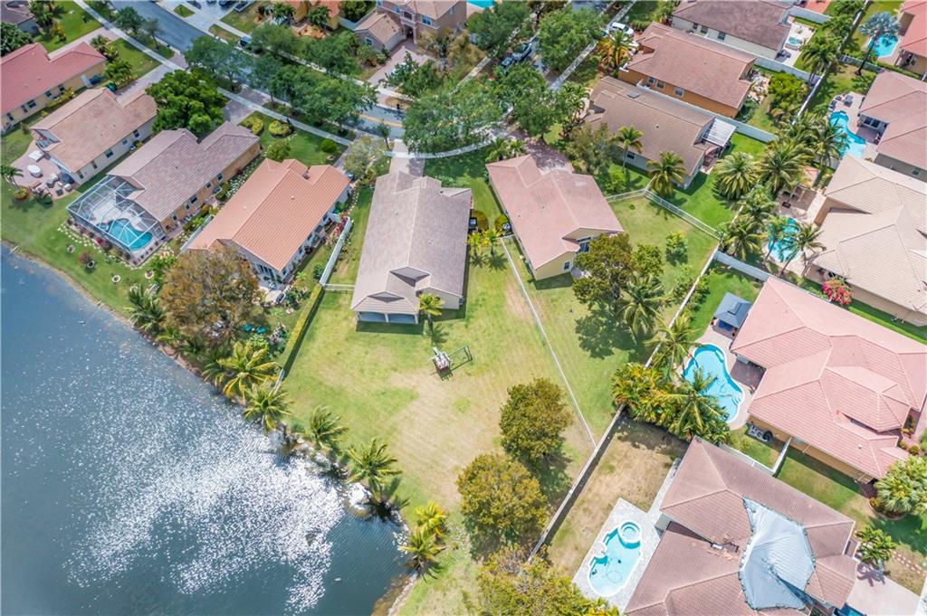 Enjoy this HUGE one of kind yard, large enough for you to host all your family and friends. This oversized lot gives you plenty of privacy with no neighbors behind and beautiful lake views. Plenty of room for a large pool. A custom covered sitting area was added giving you the perfect place to enjoy the backyard. The kitchen was completely remodeled with gorgeous, rich wood cabinetry with soft close drawers and doors. All stainless steel appliances, beautiful granite countertops and backsplash, large center island with sitting area. 2 bathrooms have been completely remodeled with new tile and fixtures. Home is protected by accordion shutters and a security system with numerous cameras throughout the property. AC was replaced in 2013, water heater replaced 2015.