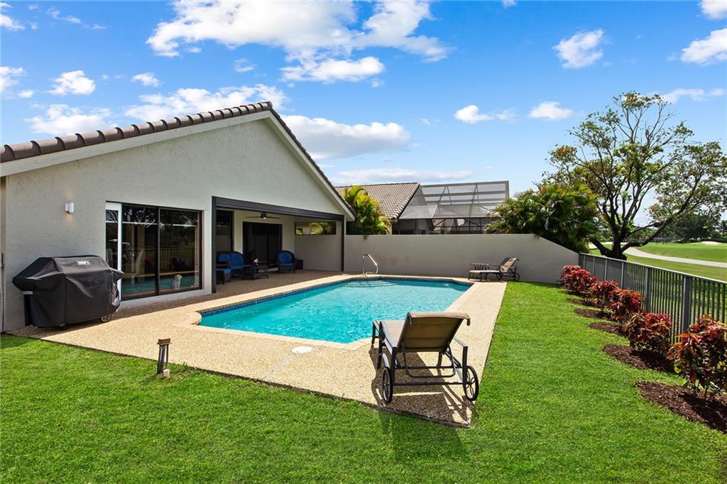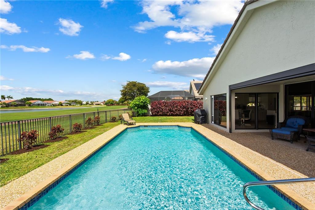 Gated Boca Woods Country Club. This exceptional updated three bedroom, two bath, pool home on an oversized lot is located on highly desirable Crystal Lake Drive. This property features a new roof 2018, year and one half old a/c and duct work. Beautiful bright, spacious open living space with vaulted ceilings, eat in open kitchen with an oversized island, quartz counter tops, SS appliances, great room, dining area. Enjoy relaxing on the patio with the phantom screen either up or down while overlooking the pool, golf course and lake view. Boca Woods Country Club offers two 18 hole golf courses,driving range,putting green,tennis,fitness center,pool,pickle ball,dining.Mandatory membership $65,000 paid 10 days prior to closing,$30,000 refundable when you sell home. See attachment
