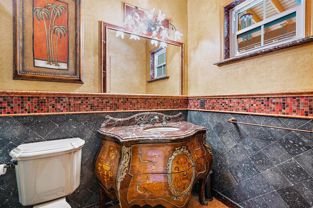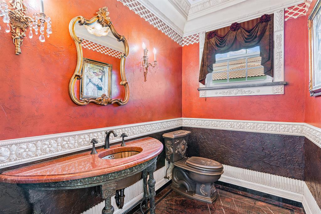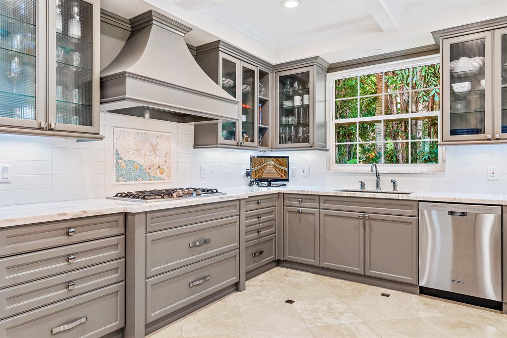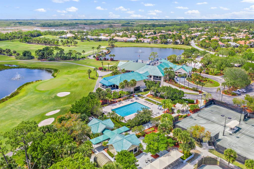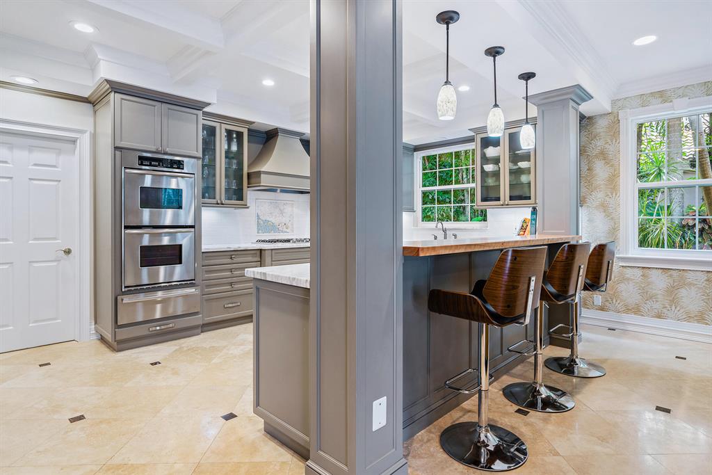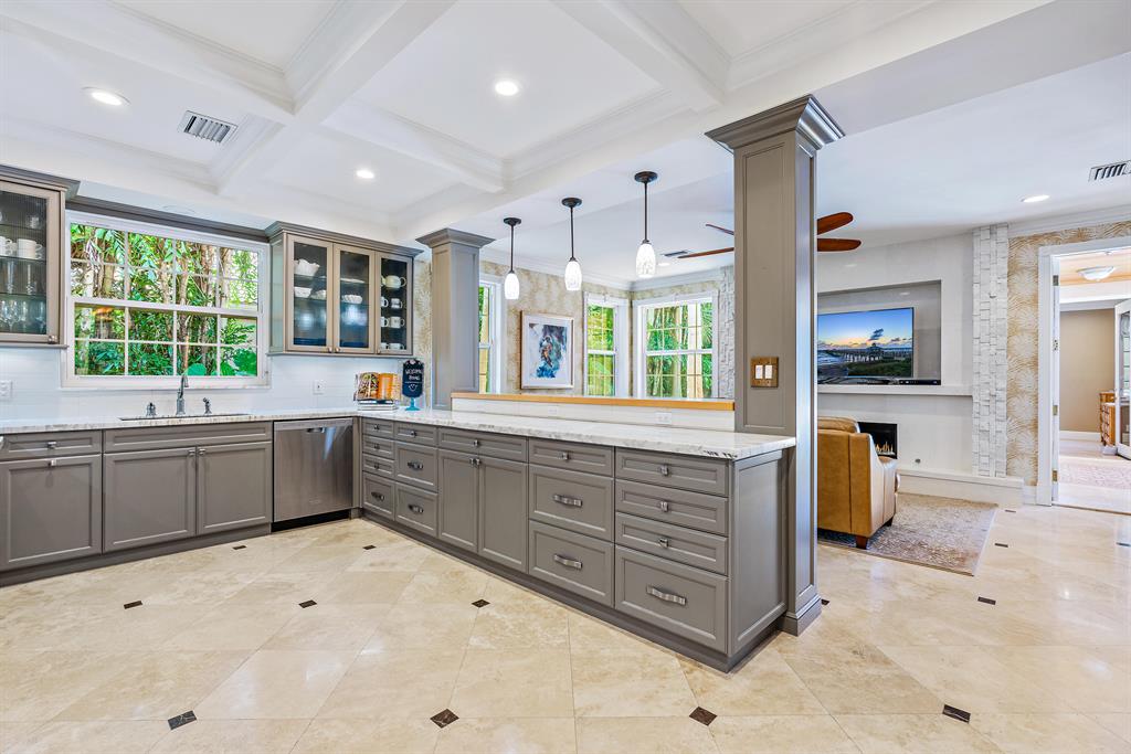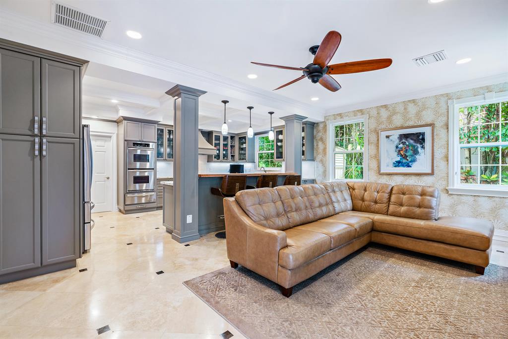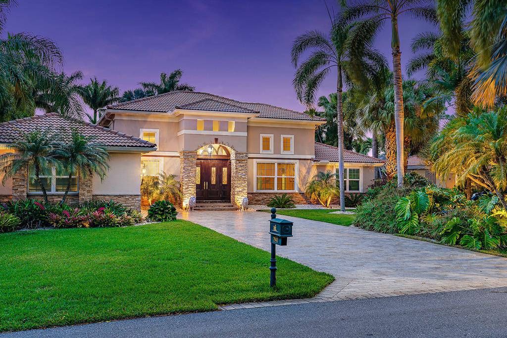 A move-in ready ''mini-mansion'' situated on the 18th fairway. This exquisite home boasts many unique fixtures and finishes including 17-ft ceilings accented with Euro-style, moldings and appliques. A beautifully renovated kitchen includes coffered ceilings, custom wood cabinets, double ovens, warming drawer, gas cooktop and marble countertops that open to an adjoining den. Gorgeous parquet floors in the great room accentuate 3 sets of French doors which open to the resort-style, patio equipped with heated pool, gas fire pit and summer kitchen. Both the master suite and cabana guest suite open onto the pool deck. The automated saltwater pool & spa overlook a tropical outdoor oasis. Full house protection ensues with a Generac generator and impact windows. Club membership not required.