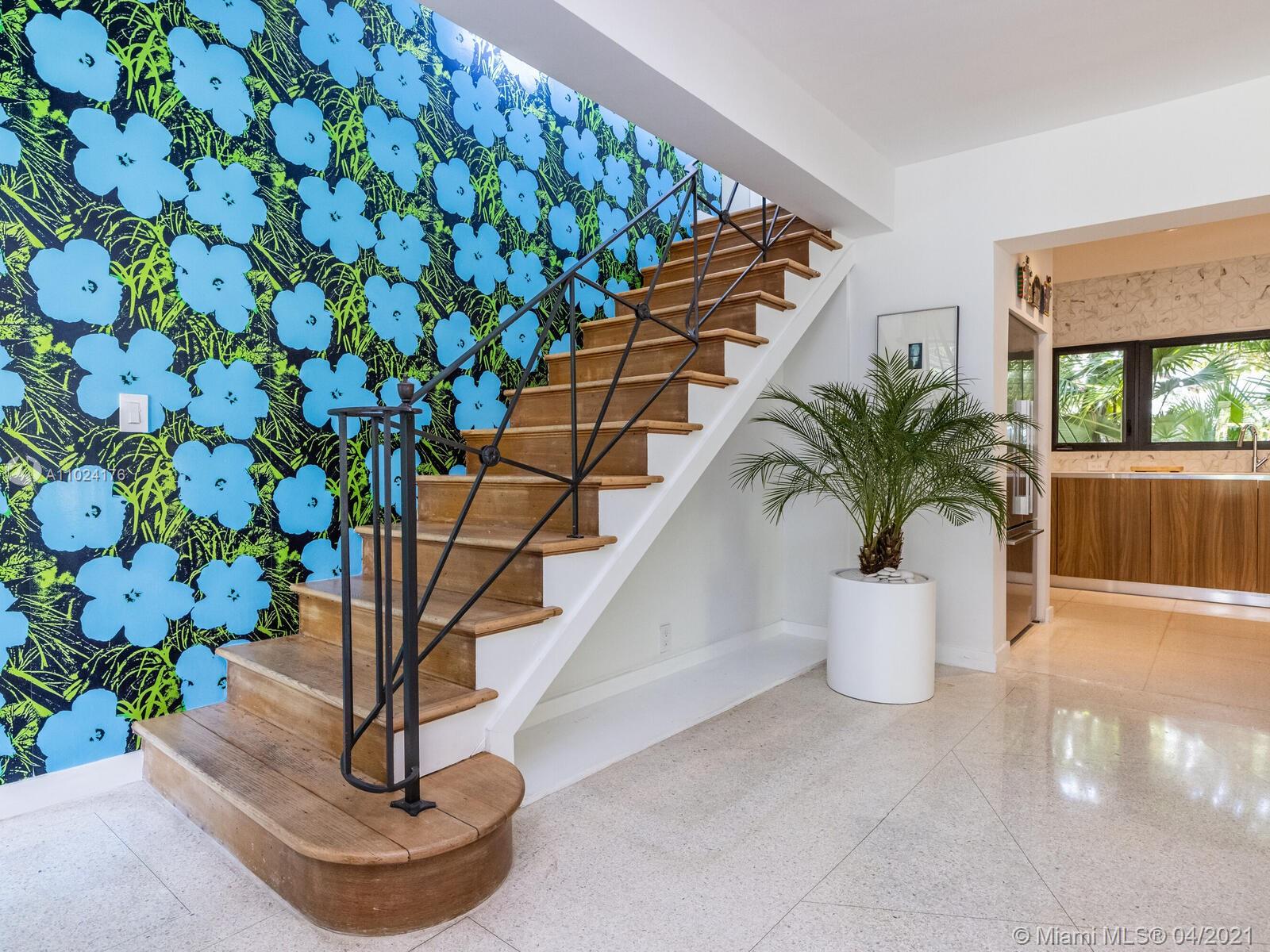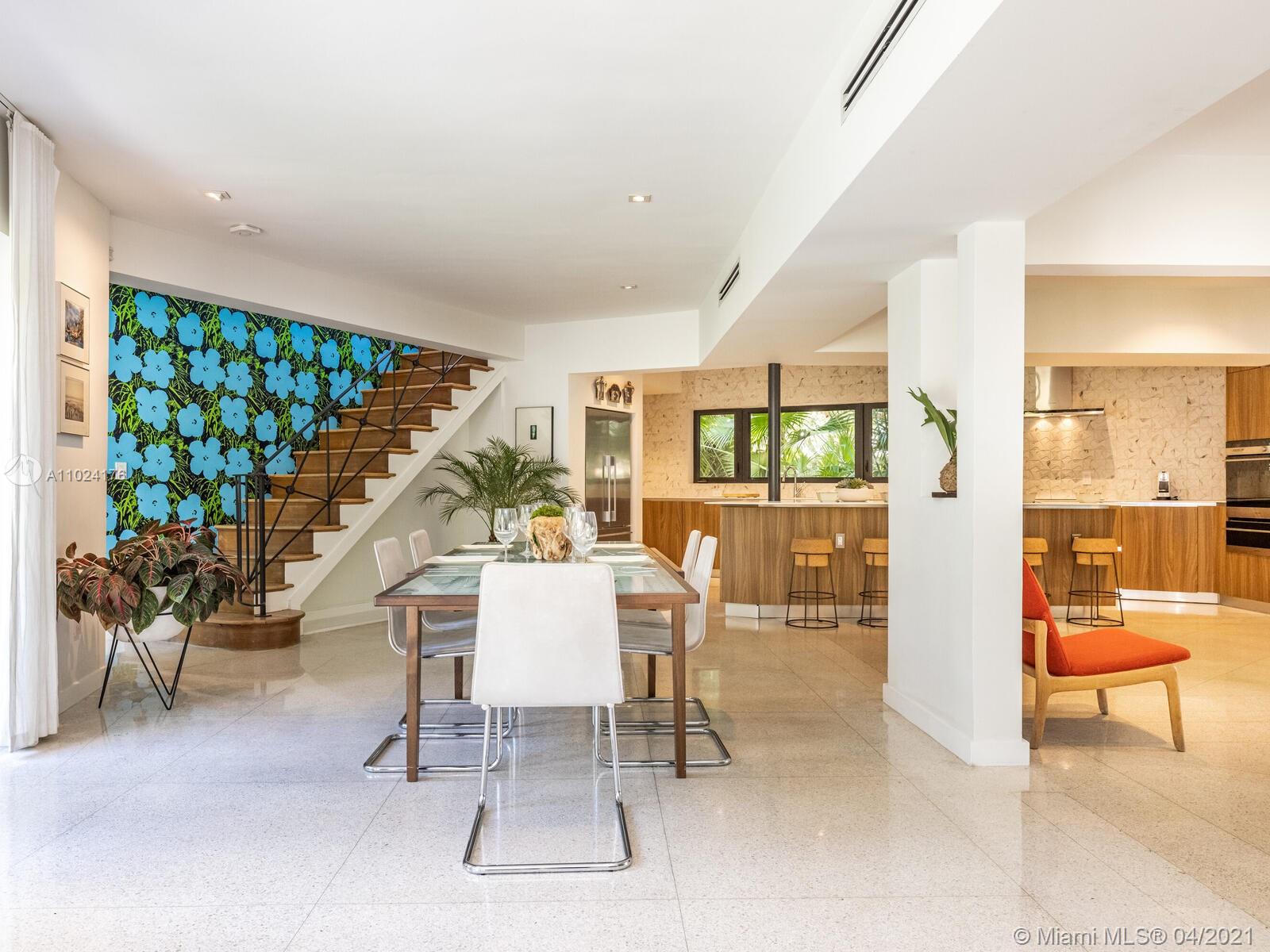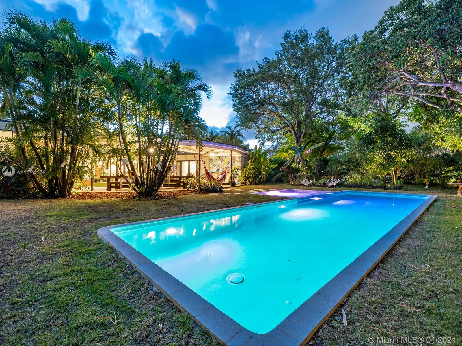 Welcome to The Panorama House! Recently renovated sprawling Mid-Century Modern marvel by noted architect, Joseph De Brita. Cleverly designed on a 1/2 acre corner lot, it wings out to an expansive hexagon-shaped loggia and stunning lush gardens with new sparkling 42’ pool with sun shelf. So much room to relax or entertain! Great layout and authentic character: eat-in Italian designer kitchen, split bedroom plan, new luxurious spa-like master suite retreat, plus preciously-preserved Instagram-ready vintage baths, a bonus guest suite and a 468 SF screening room! Feels like an exclusive boutique hotel with Andy Warhol wallpaper, Wynwood Walls-inspired custom murals by top artists and a forest of edible trees. New roof (2021). Experience your own private sanctuary in the heart of Miami Shores!