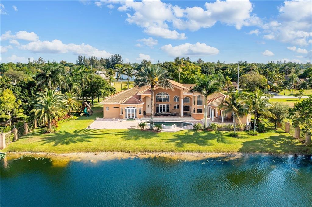 Centrally located in the Town of Davie, only minutes from the City of Weston, I-595 and I-75. This sprawling turn-key residence offers a desirable open floorplan, high ceilings, impact windows and expansive lakefront views. Open concept chef's kitchen flows effortlessly into living spaces. Enjoy entertaining in the Theatre room or outdoors around the pool or covered patio. Spacious master with 4 additional bedrooms, one currently used as a private office. New roof in 2019, newer A/C's and a 3 car-garage. This is a must see!
