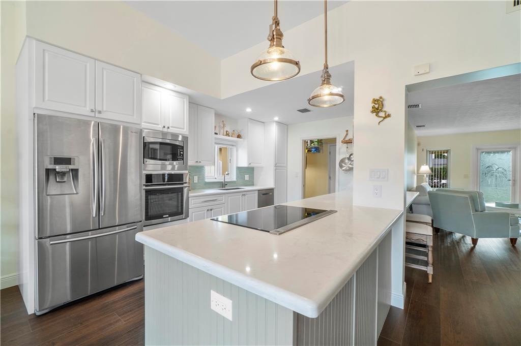 Stunning, bright,open plan 3 bed home w/11ft high ceilings & 65ft waterfront! NO fixed bridges!So many upgrades!New designer kitchen& oversized breakfast bar. High end appliances,tons of storage! Additional dining area. Impact windows with additional designer shutters. New AC, waterheater & flooring. New fence & driveway. Large open family room & large master bed with volume ceilings & french doors to the water. Beautifully landscaped yard with 2 patios & fruit trees. Master bedroom with dual sinks & large walk-in closet. Garage.Newer roof. Laundry room inside! Garage with lots of storage, attic and work bench. Room for pool. Murphy bed can stay. Perfect for entertaining, watch the boats go by! Must see it to believe it - A rare gem in the ever popular Citrus Isles!