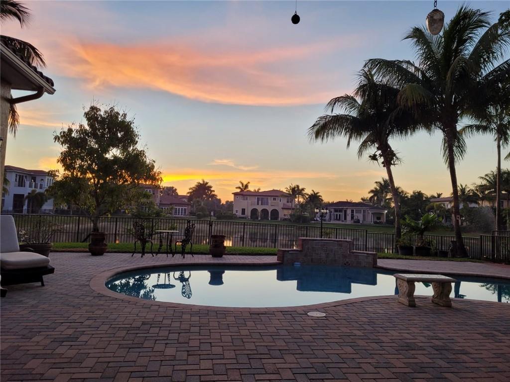 This Amazing two Story Lake view home situated perfectly in Heron Bay's gated community, very family friendly neighborhood with "A" rated middle, and high Schools, plus a newly renovated clubhouse with spa, gym, and huge pool. Home features 6 Bedrooms + Office + Media Cove, 5 Bathrooms, three car garage. Master Bedroom features his and her closets, car-wash style his and her showers, plus a Jacuzzi tub. Also features full guest bedroom suite with shower (included in bedroom count). A Cabana bathroom with direct access to swimming pool area. Stunning Gourmet kitchen with five burner Gas cook-top, Granite counter top, Stainless steel appliances. Private owned 100 gallon propane gas tank The most beautiful and breath taking sunrise view from pool area