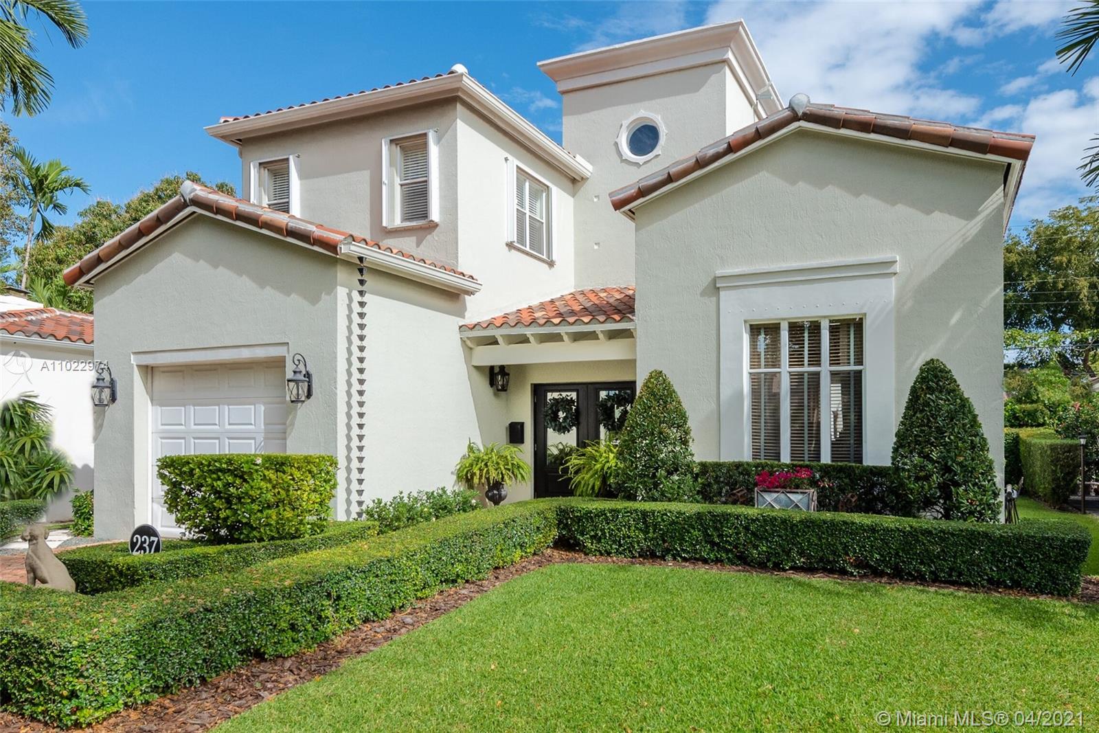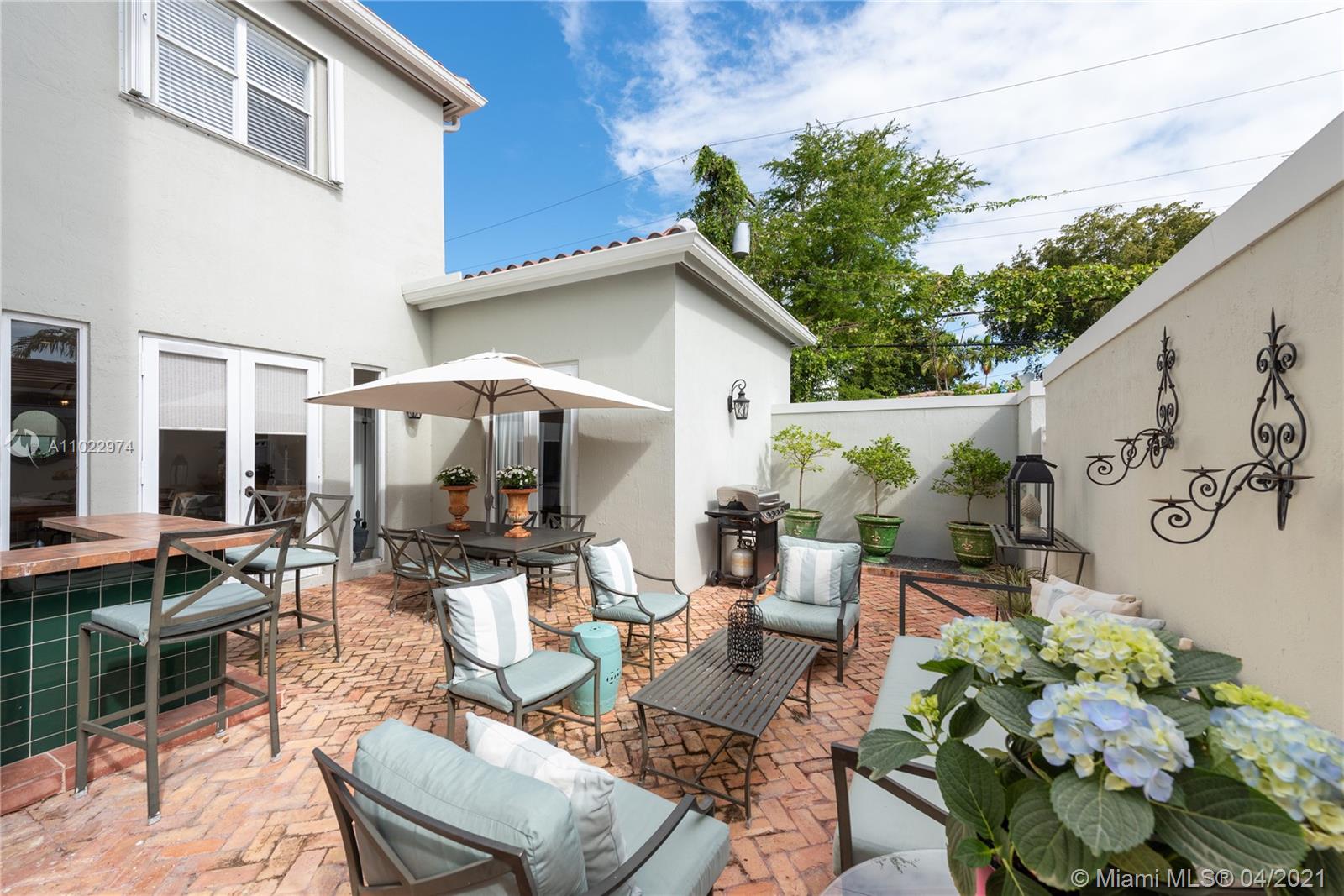 Stunning two-story home just east of Ponce south of University Dr. on a quiet, tree-lined street. Built-in 1997, this home features 3 bedrooms/2.5 baths. Foyer entrance through double doors. Formal living room, hall with half bath next to the staircase, updated kitchen that overlooks the dining room. The large master suite is downstairs with French doors to a private patio. Upstairs are two large bedrooms with a hall bath. High ceilings throughout the home and many windows that allow lots of light. Chicago brick driveway, sidewalk, and spacious interior courtyard. Finished one-car garage, now a playroom, is fully usable as a garage. Split a/c units, Shutterr. Brand new roof. Home is exquisite and move-in ready. 5,000-foot lot with 1,837 adj. sq. ft. Well priced for today’s market.