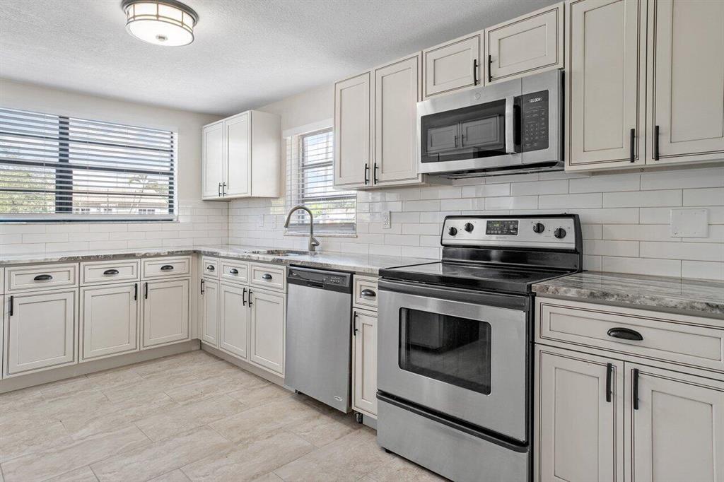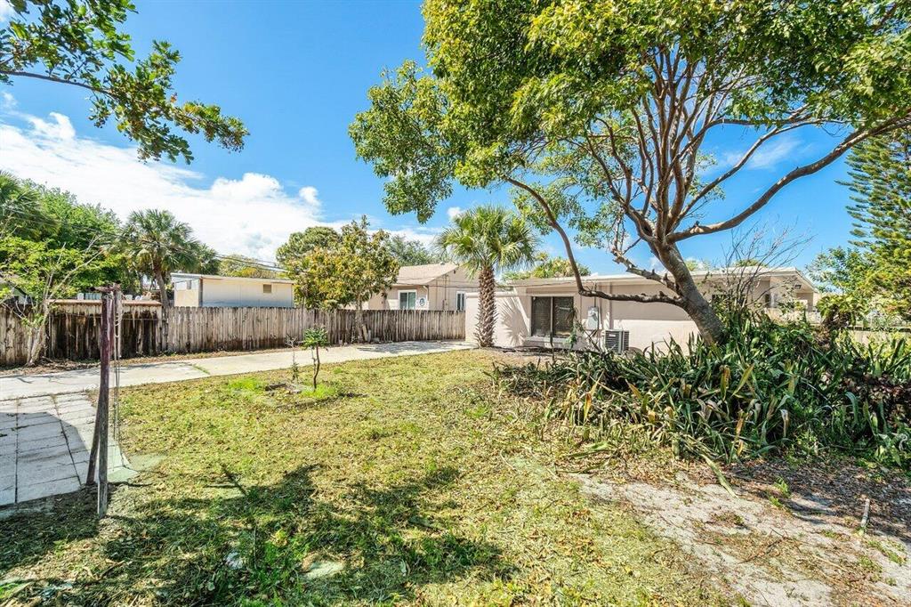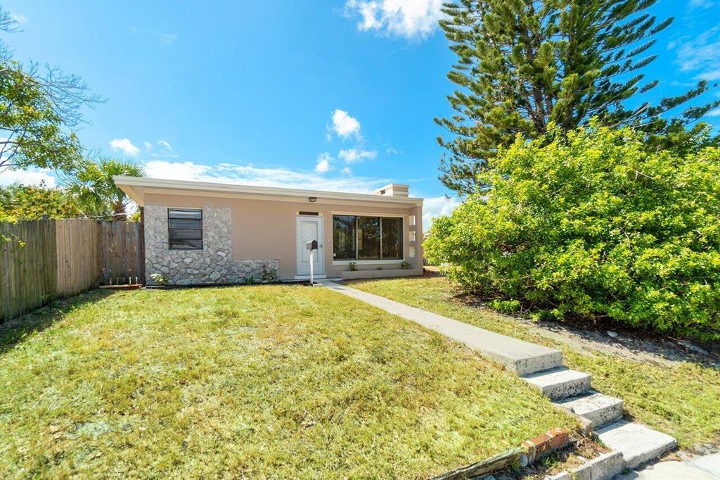 Beautifully updated 2 bedroom 1 bath with office that has a closet that can easily be a 3rd bedroom single family home on a cornet lot. New AC! Custom wood tile floors in living area. Carpet in the bedroom. Updated kitchen with granite counter-tops, cream wood cabinets and stainless steel appliances. Bathroom has an updated vanity and custom wood tile shower. Freshly painted interior and exterior. Huge private backyard with storage sheds.