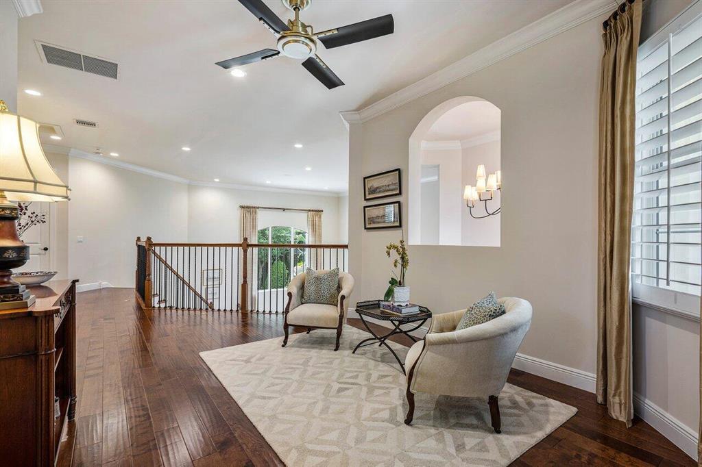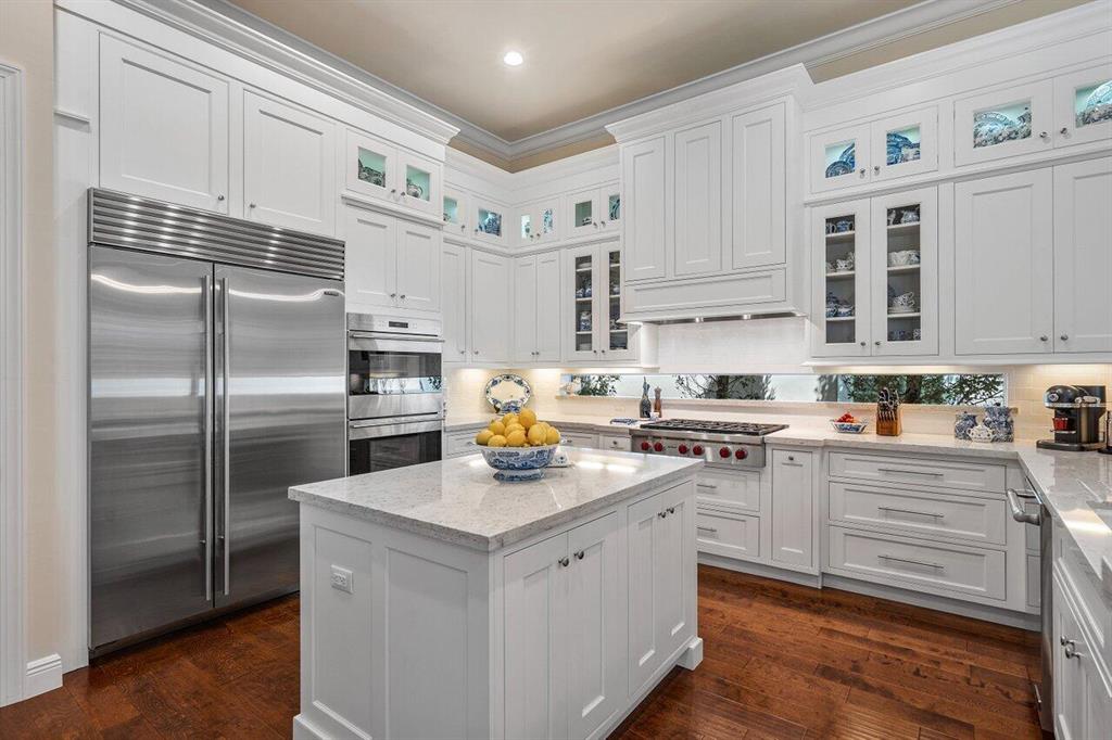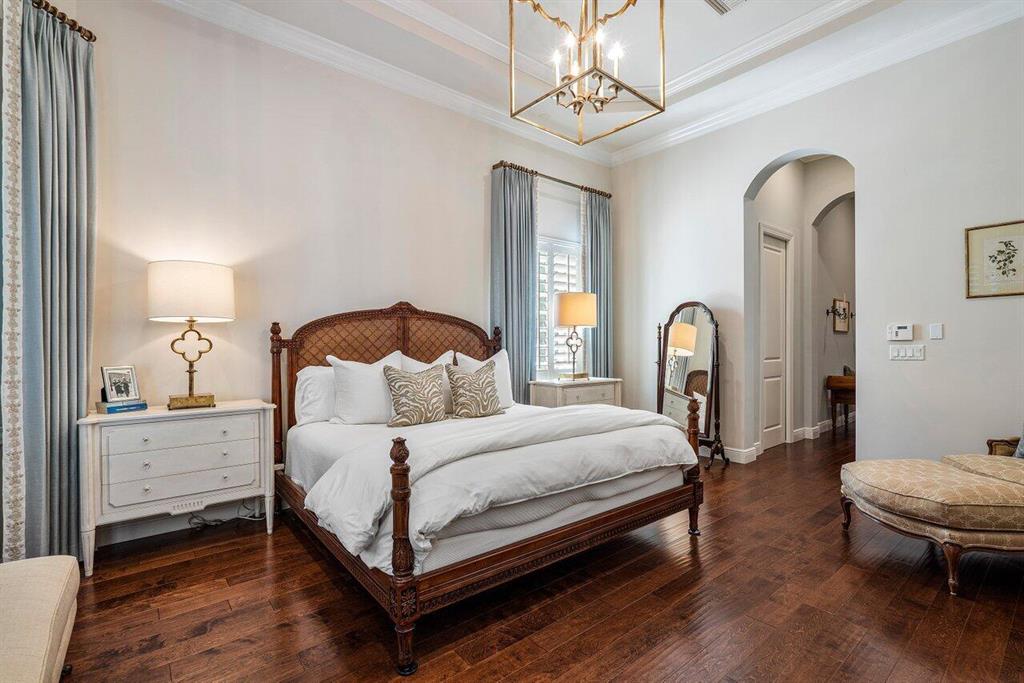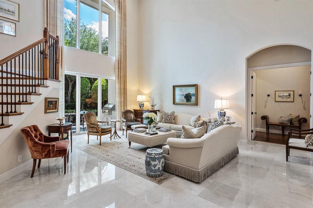 Every inch of this amazing residence is finished to perfection in a timeless transitional style! The facade presents with crisp clean lines and the home is surrounded by beautiful new lush landscaping. The brick paved driveway leads to a double door entry which opens to a welcoming foyer and to the large formal living room with 24'' polished Crema Marfil marble floors, volume ceilings and 2- story window wall filling the home with natural light. The formal dining room with tray ceiling and crown moldings is adjacent. The light, bright library/media room with wood flooring and plantation shutters features a beautiful custom designed wall unit with LED lighting. The sumptuous Master Suite features hard wood flooring, plantation shutters, tray ceiling and crown moldings and the Master bath