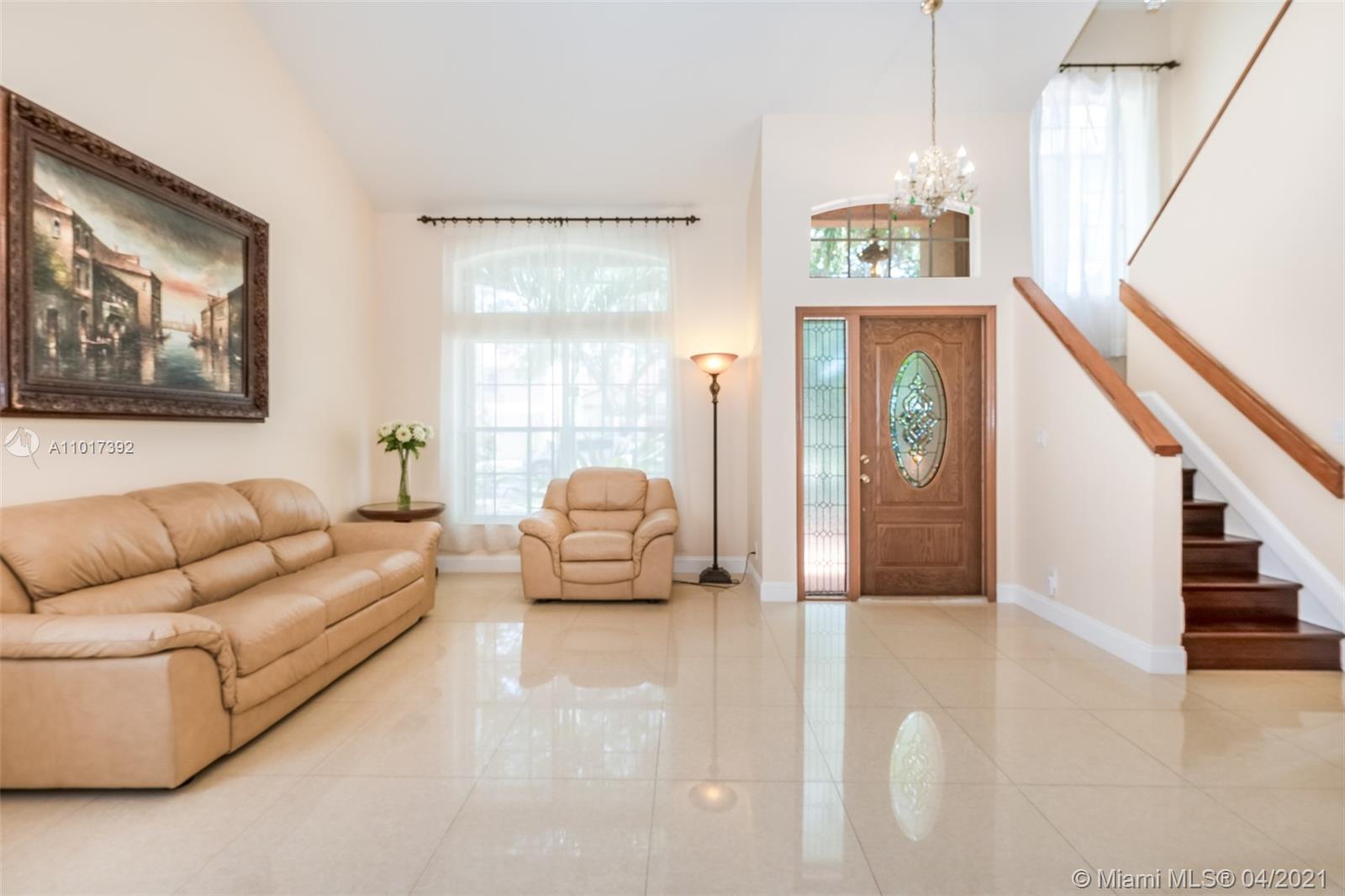 DESIREABLE 4 BED & 2 1/2 BATH RECENTLY RENOVATED HOME IN HIGHLY SOUGHT-AFTER EMBASSY LAKES. THIS BEAUTIFUL HOME FEATURES TILE FLOOR, BAMBOO STAIRS AND LAMINATE ON THE SECOND FLOOR. BACKYARD PATIO RESCREENED LAST YEAR. 15 FOOT CEILING IN THE LEAVING/DINING ROOM WITH LARGE WINDOWS THAT PROVIDES AN AIRY FEELING WITH PLENTY OF NATURAL LIGHT. ACCORDION SHUTTER PROTECTION THROUGHOUT. NEWER ROOF AND A/C FROM 2017. NEW REFRIGERATOR & STOVE. OPEN KITCHEN GRANITE COUNTERTOPS & STAINLESS-STEEL APPLIANCES. NEWER WATER HEATER. QUIET STREET WITH FRIENDLY NEIGHBORS. ACCESS TO SOME OF THE BEST ‘A’ RATED SCHOOLS IN SOUTH FLORIDA. GORGEOUS FENCED YARD PERFECT FOR ENTERTAINING. RESORT STYLE GATED COMMUNITY W/FABULOUS POOLS, CLUBHOUSE, GYM, SPORTS COURTS, PLAYGROUNDS & 3 MANNED GATES.