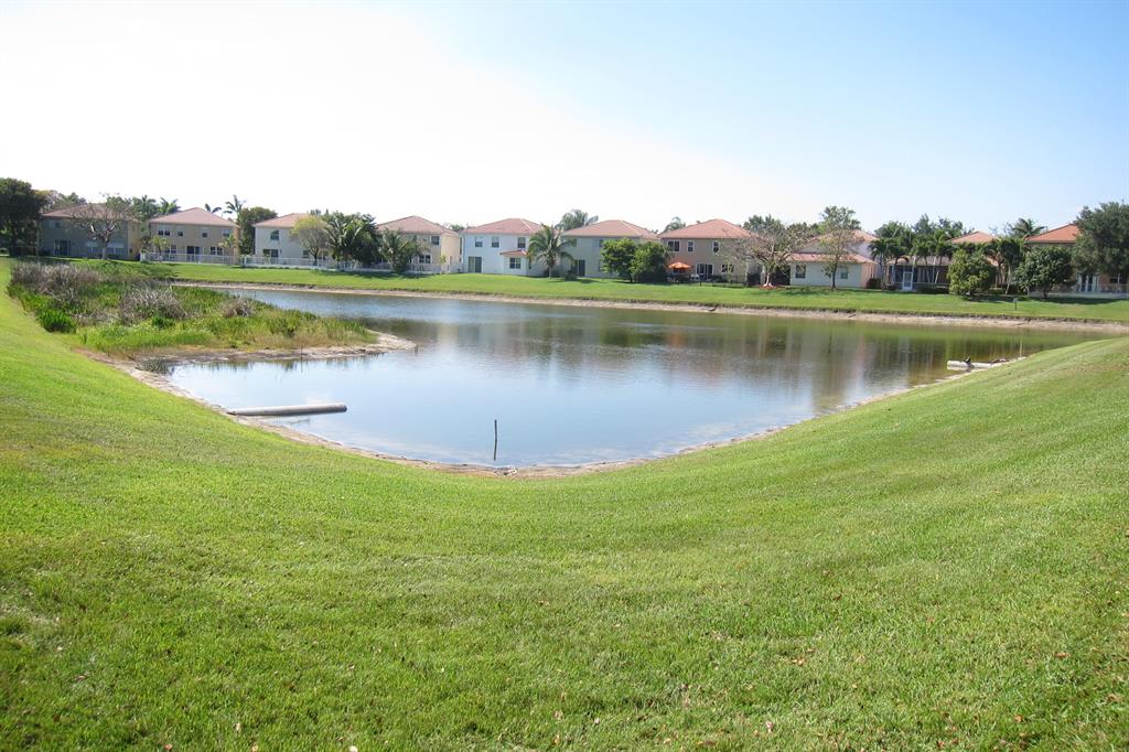 This former 4 2 1/2 model home on a large corner lot has spectacular views on the lake . It is in guard-gated Terracina and has been very well maintained by the current owner. Included are: accordion shutters thru-out, tiled entire 1st floor, whole house water purification system, newer AC, double door entries to home and master bedroom, reverse osmosis, duct purification, 3 year old appliances and hot water heater, community pool and rec area. There is a large open kitchen area with a contemporary backsplash and views out to the lake thru the bay windows . The master bedroom also has bay windows overlooking the lake. Also, it is beautifully landscaped with a high aluminum fence in the backyard . Hoa fees include cutting the lawn ,bushes and pest control. Move right In!!