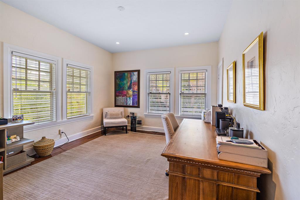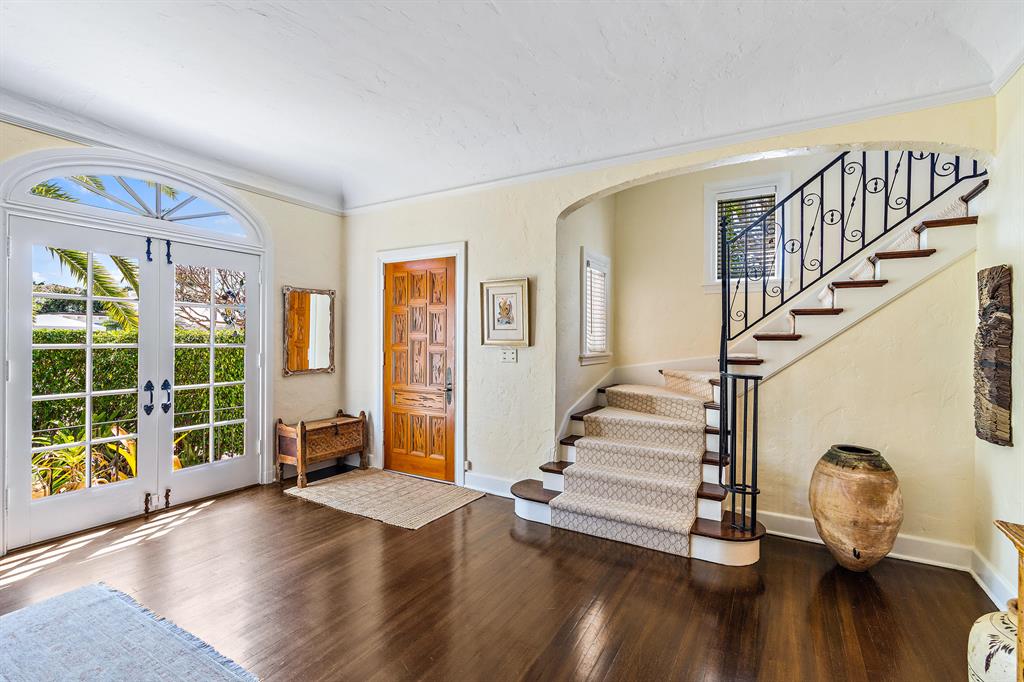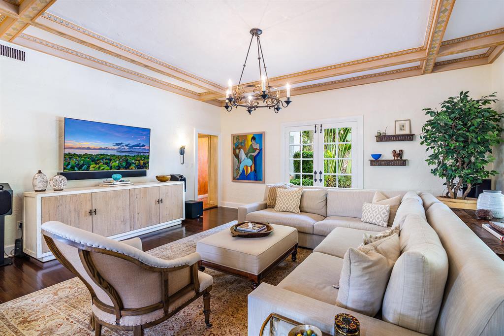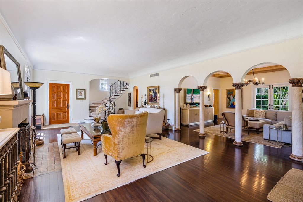 Absolutely stunning 3-Story home on a premium lake block street in the South of Southern (SOSO) area of West Palm Beach. Situated on a rare 13,000SF parcel is a thoughtfully designed 4,974SF Mediterranean home with a separate guest house above the detached 2-car garage. 9ft ceilings, a large family room, and living room give this 1930's home incredible volume and size in the primary living areas. The second floor features 4 generous bedrooms and 2 bathrooms. A bonus 3rd floor tower gives you incredible views and a wonderful, private location to relax. Phenomenal outdoor entertaining space with a covered loggia and pool w/spa. The professionally installed landscaping and landscape lighting creates a feeling of being in a European oasis.