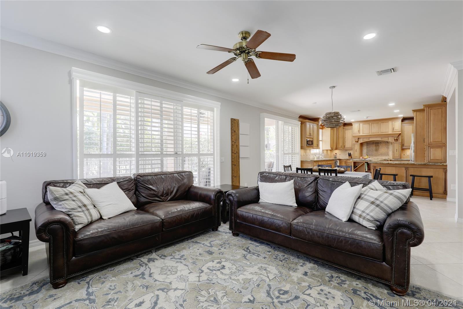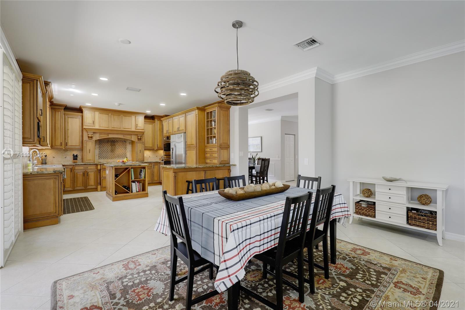 Step into your beautiful new home with 6 bedrooms and 4 bathrooms. This home is light and bright with cathedral ceilings in the formal living room, crown molding, and neutral porcelain diagonal tile flooring throughout. The stunning custom kitchen, which is perfect for entertaining with wood cabinets, granite counter-tops, and top of line stainless steel appliances, opens to the large family room with wide louver shutters and an adjacent first-floor bedroom with walk-in closet. The upstairs includes a grand primary bedroom w/ updated bathroom plus 4 large bedrooms, two with a Jack & Jill bathroom. The peaceful backyard with covered patio and large pool with a child-proof fence is perfect for relaxing after a long day.