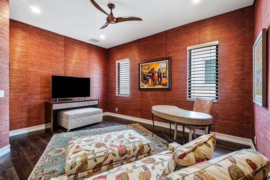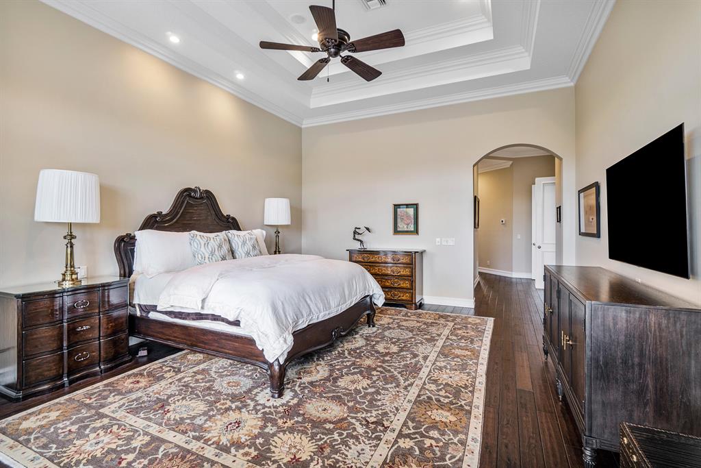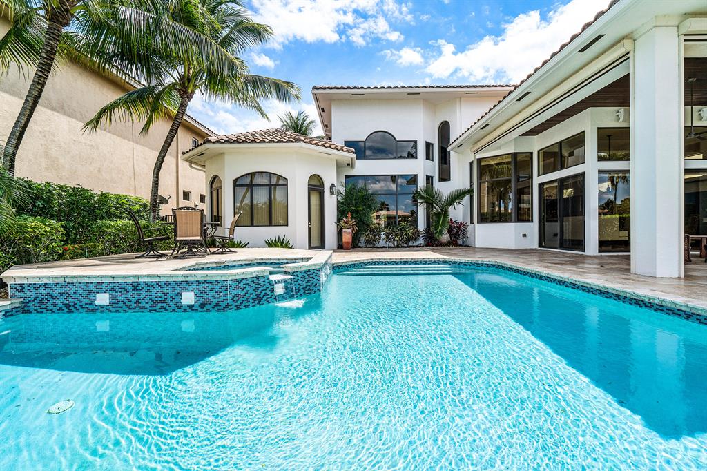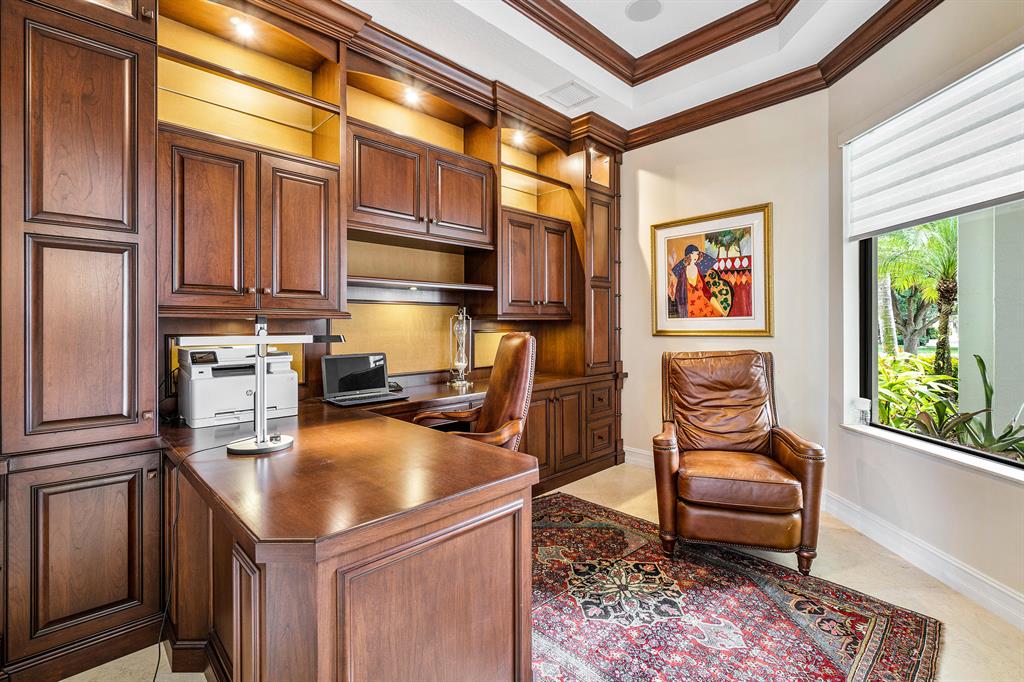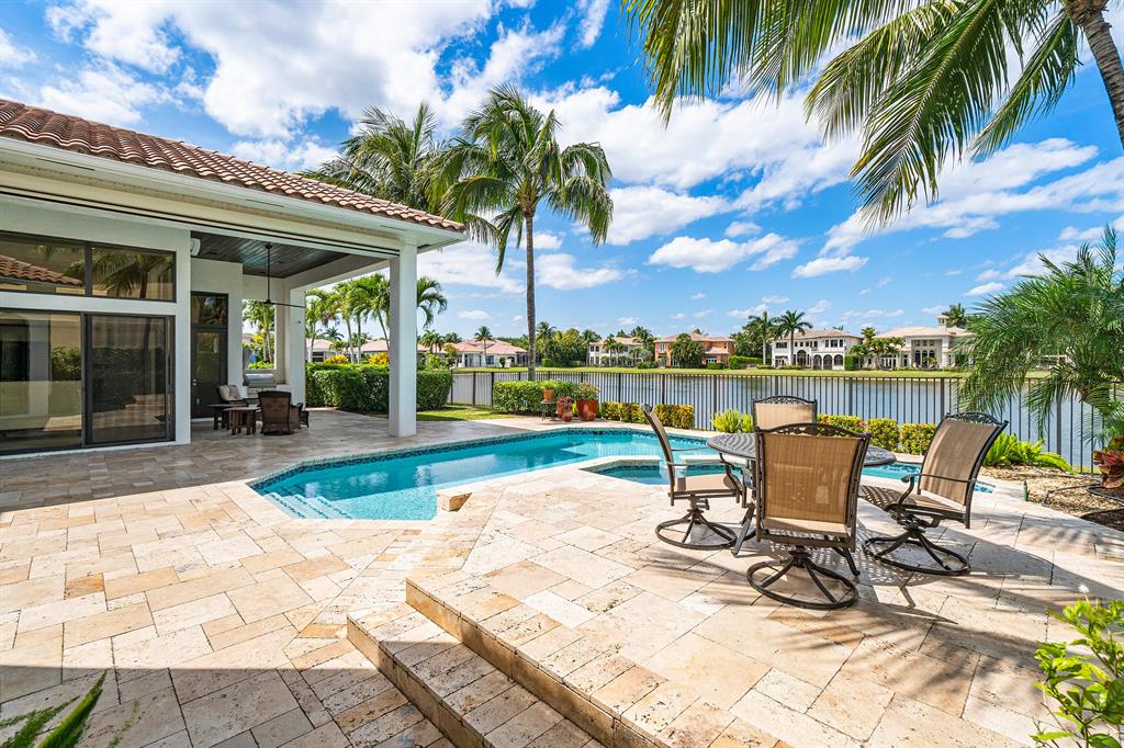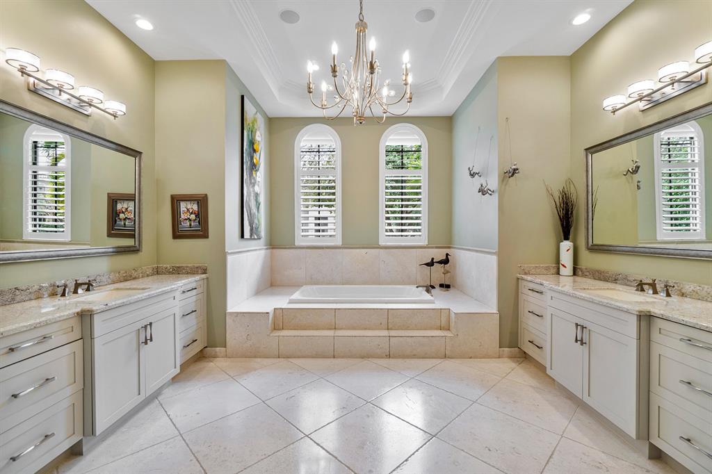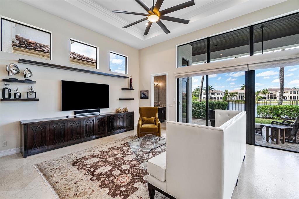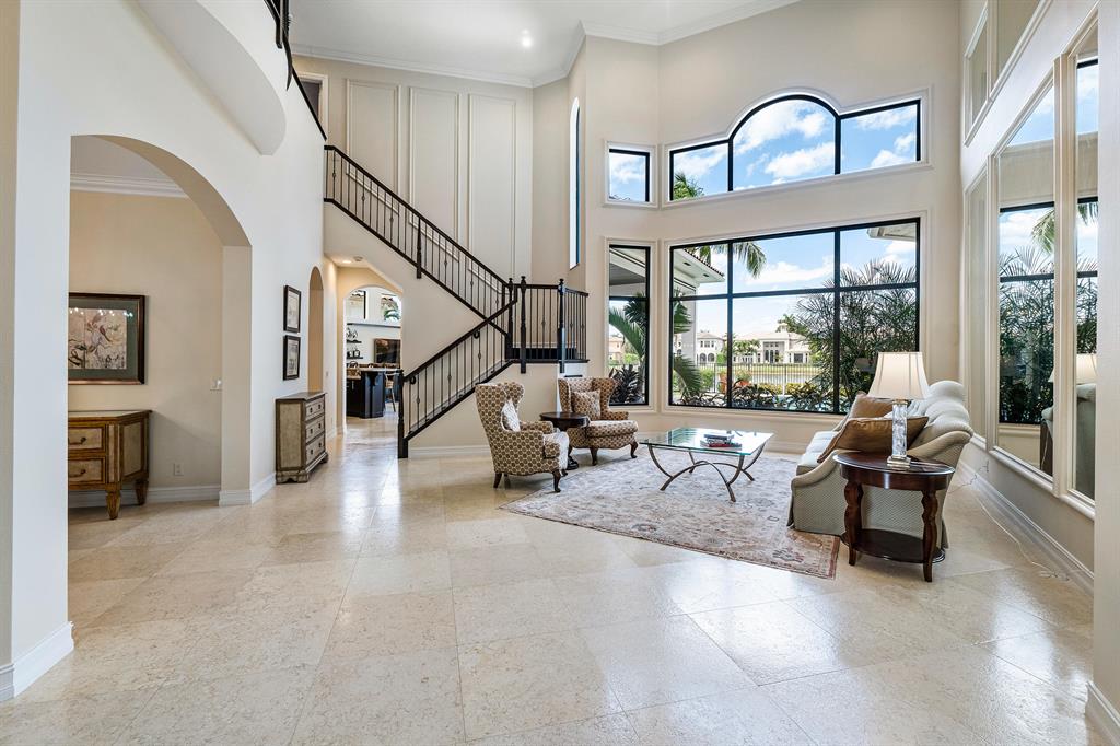 This gorgeous lakefront rarely offered and custom built Bordeaux model is filled with top designer appointments. 2 bedrooms including master & fully outfitted office down, plus living space -including a gourmet kitchen, plus 4 large bedrooms up, 3 with en-suite baths plus an oversized loft. Rare Limestone flooring thru-out main living areas and new wood flooring in all bedrooms. Master bedroom features his and her closets and a luxurious master bath. Designer wall coverings & touches and custom closets thru-out. Full house generator and full impact glass thru-out. Fully painted inside and out. With a resort style pool & spa, summer kitchen, large marble deck, covered patio w/ electronic screens, and tropical landscaping on a prime lake lot this transitional beauty is not to be missed.