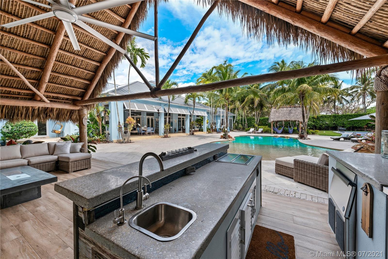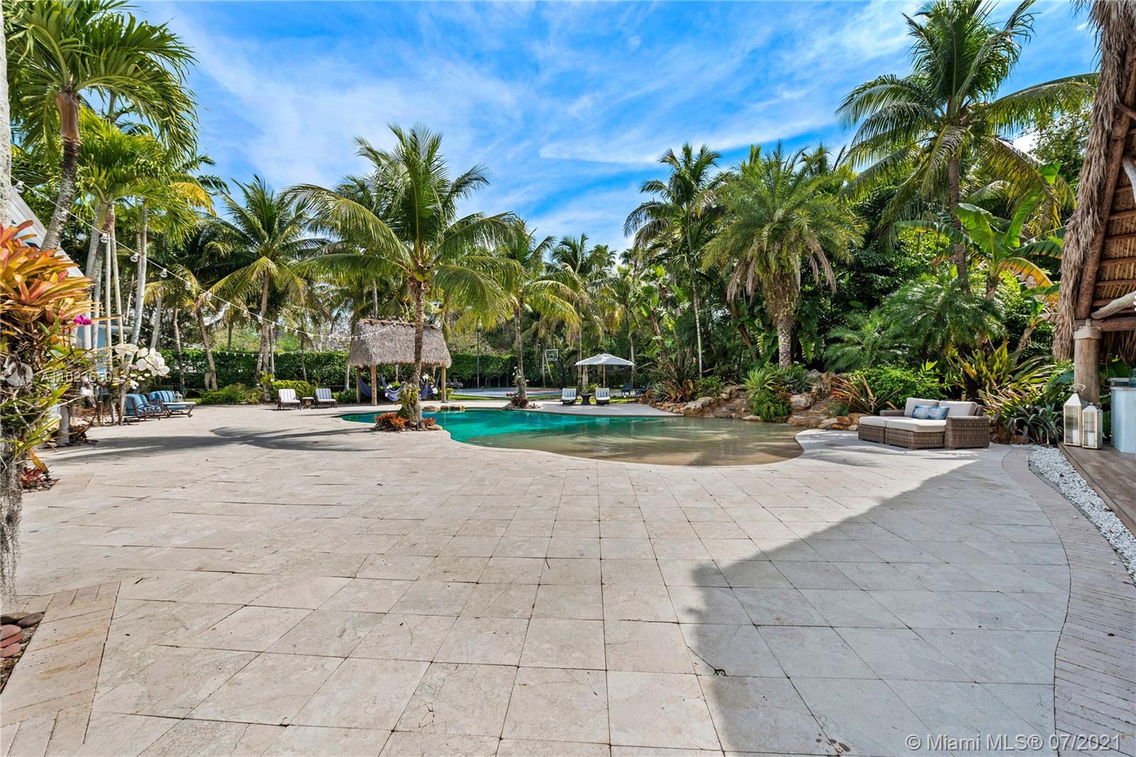 Welcome to your private oasis! Nestled on a corner, one acre+ lot in the heart of N Pinecrest, this 6 bed, 5/1 bath masterpiece feels like your very own resort. Indoor & outdoor spaces designed for privacy, relaxing and entertaining, this estate feels like home from the moment you enter the gates.Chef’s kitchen equipped w top-of-the-line appliances is an epicurean dream. Luxurious Master suite features sitting area, gym, his/hers closets & spacious bathroom.Enjoy magnificent outdoor entertaining by the tiki hut with full outdoor kitchen, lounge by the pool w cascading natural rock waterfall or rest in the hammocks while watching the kids on the lit basketball court. Bonuses include office, study room & full home generator. When space matters most, this home leaves no box unchecked.