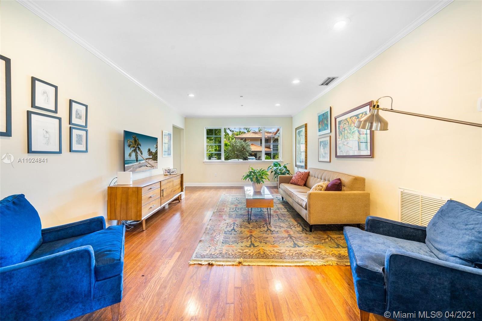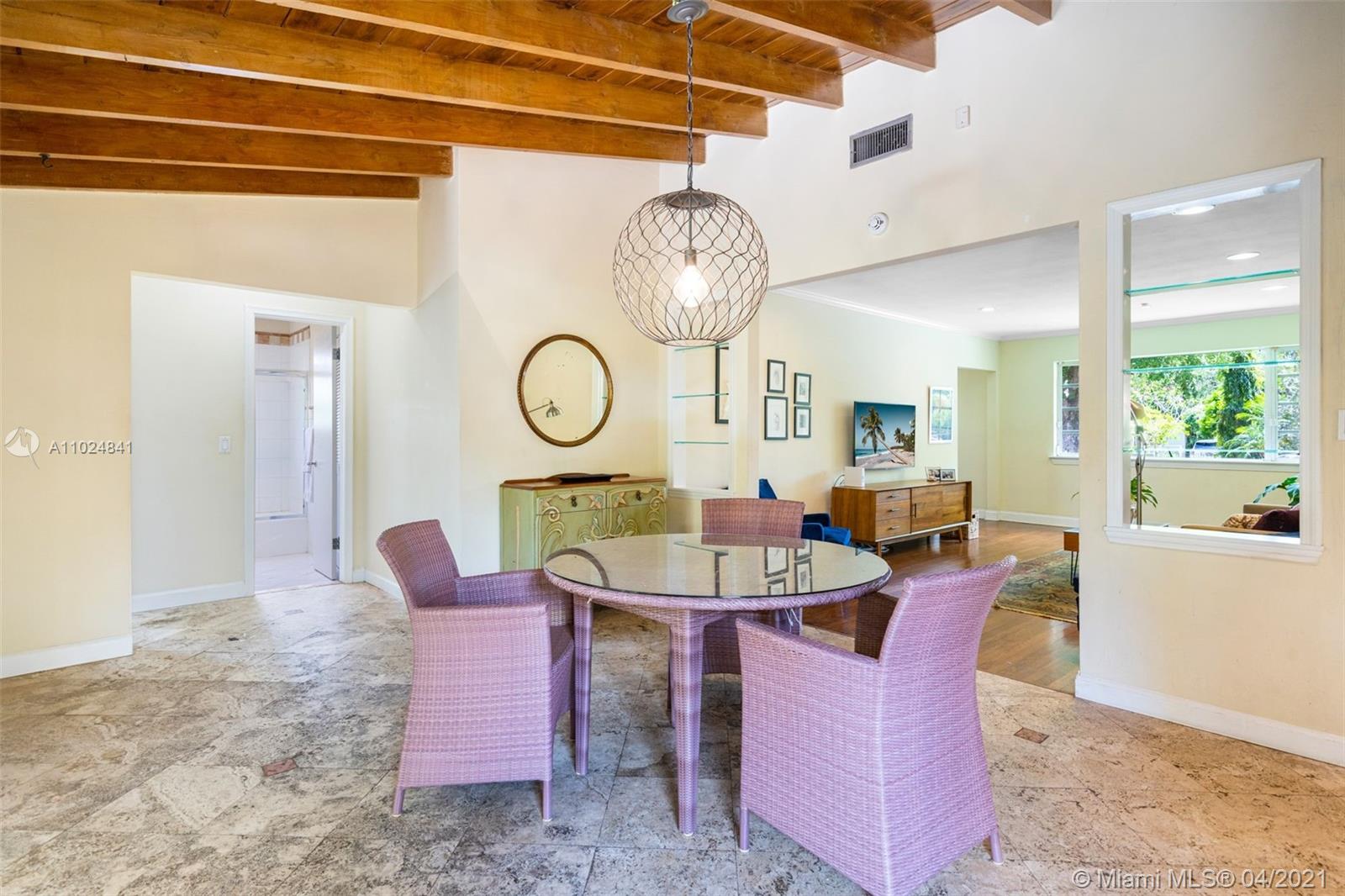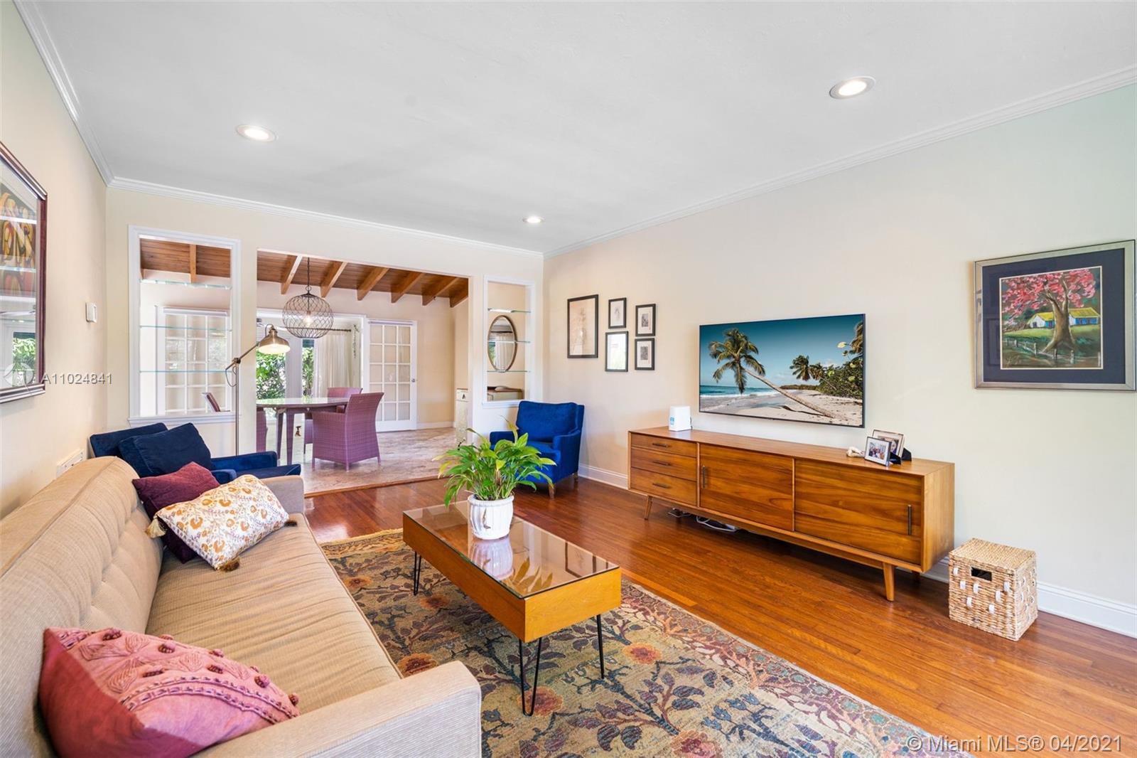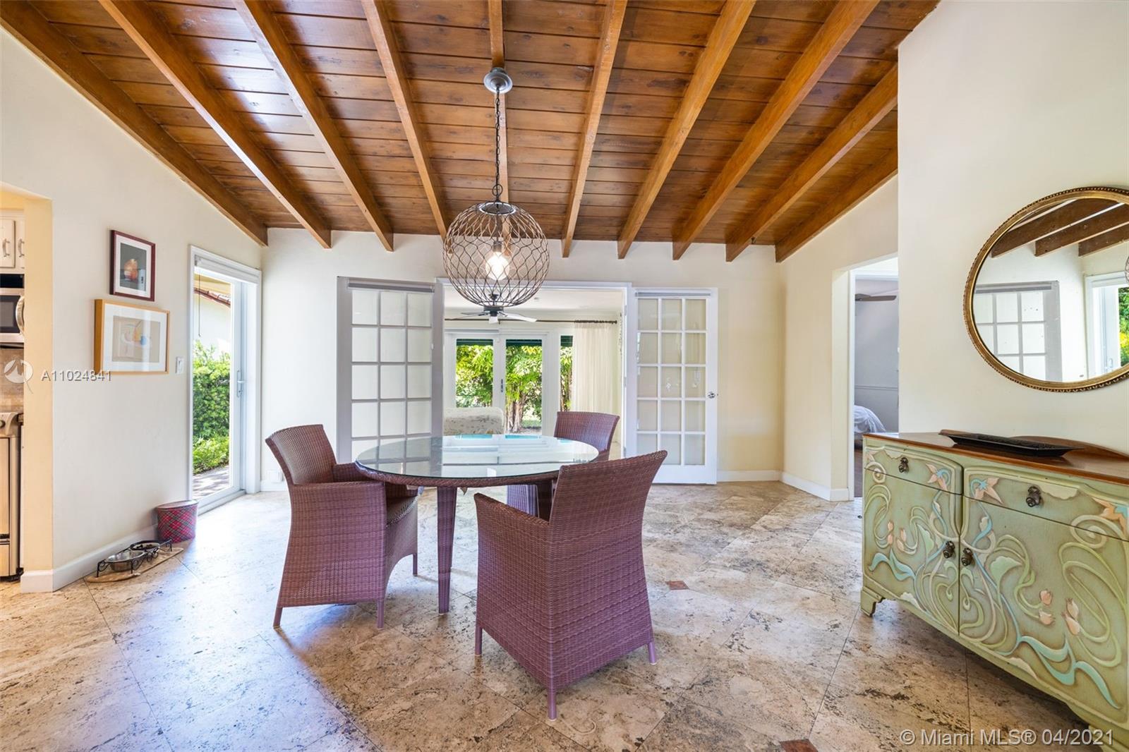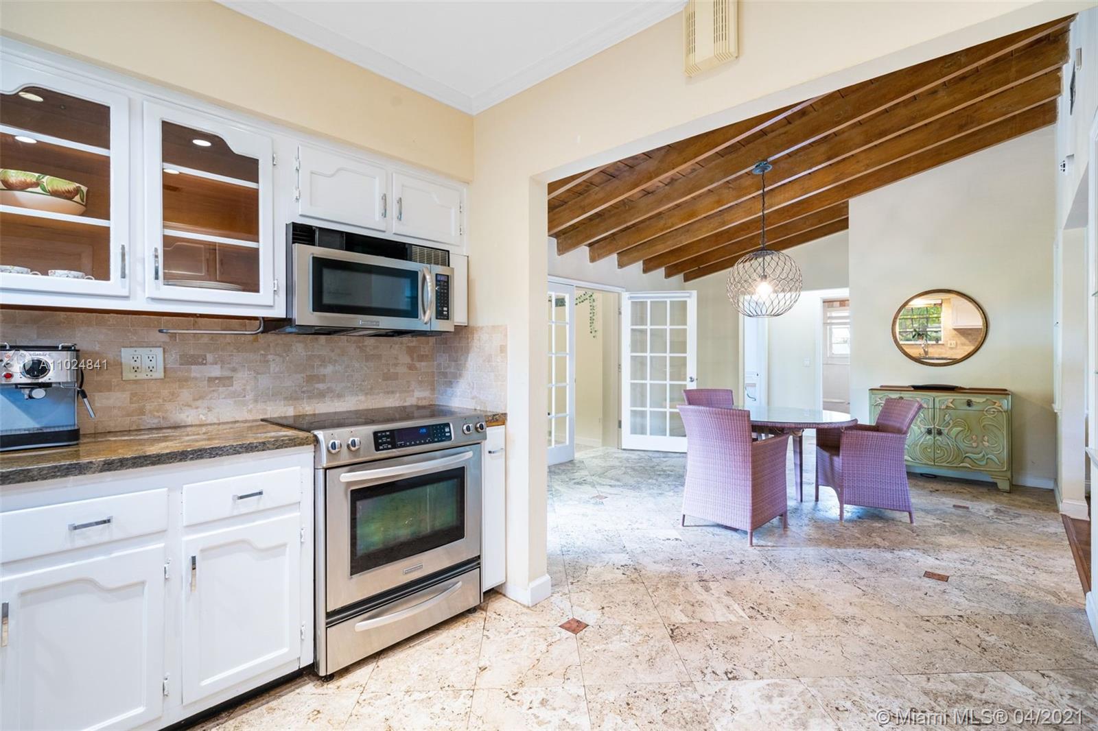 Beautifully maintained and tastefully updated, this charming 2 bed /2 bath mid-century home in the North Gables offers an open concept layout with refinished hardwood floors, a barrel tile roof, and a pitched ceiling with exposed beams in the dining room for added rustic charm. A walk-in closet in the master bedroom, granite countertops in the kitchen, all new appliances only add to this home's appeal. Impact-resistant double french doors with sidelights in the back family room and a large picture window in the front living room allow for lots of natural light to stream in both morning & afternoon. Located a few blocks from Granada Golf Course & just steps from away from Country Club Prado, Situated close to supermarkets, restaurants, shops, cafés, & highly rated schools.