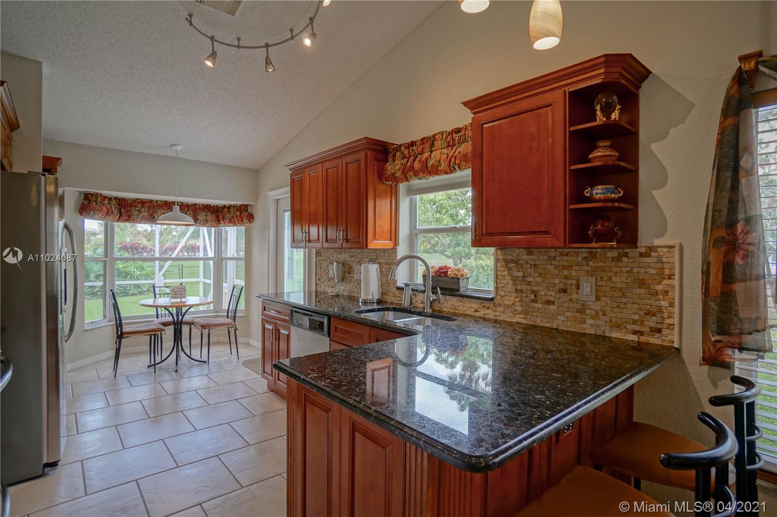 Exceptionally maintained by original owner! This pristine Bonner model 3 bed 2 bath sits on a beautifully landscaped oversized lot. Property boasts freshly painted exterior. Upgraded tile flooring in high traffic areas. Upgraded kitchen with granite countertops, snack bar, S/S appliances & wood cabinets. Breakfast area overlooking patio. Large master bedroom with his & hers walk-in closets. Newly remodeled spa-like master bath; dual sinks, separate tub and shower. Separate laundry room. Lots of natural light. Large screened patio. Room for a pool. Great entertaining space! Hurricane shutters. New S/S and timer on well water. A+ rated schools. Centrally located. TV & internet included in HOA. Additional amenities available at Rose Price Park: pool, tennis, baseball & more. A must see home!