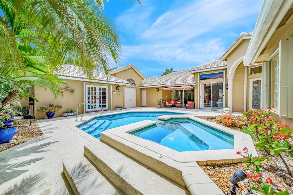 Spectacular Boca Isles South Renovated Courtyard Pool & Waterfront Home with a Guest House/La Casita in the Reserve Section! You Can Have it All! This Home Has Been Updated from Floor to Ceiling as You Find from Designers on HGTV. Over $200k in upgrades. The dramatic entrance is through the courtyard featuring a sparkling saltwater pool w/waterfalling from the raised spa & fountains Plus tons of tropical landscaping....you can go one direction to the guest house or the other way to the front door of the main house. Wow! Soaring cathedral ceilings & picturesque windows of the panoramic wide lake views! Enjoy the sense of openness, volume & space. Featuring travertine tile throughout the living areas, high-end laminate wood flooring in the bedrooms,