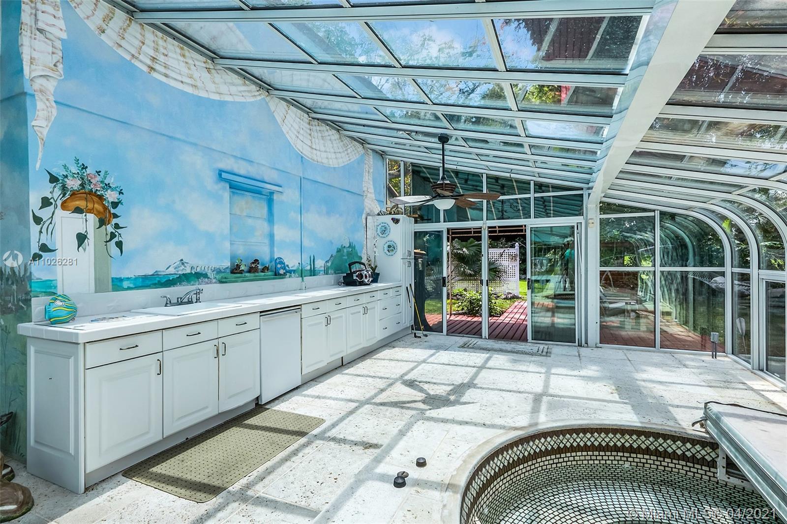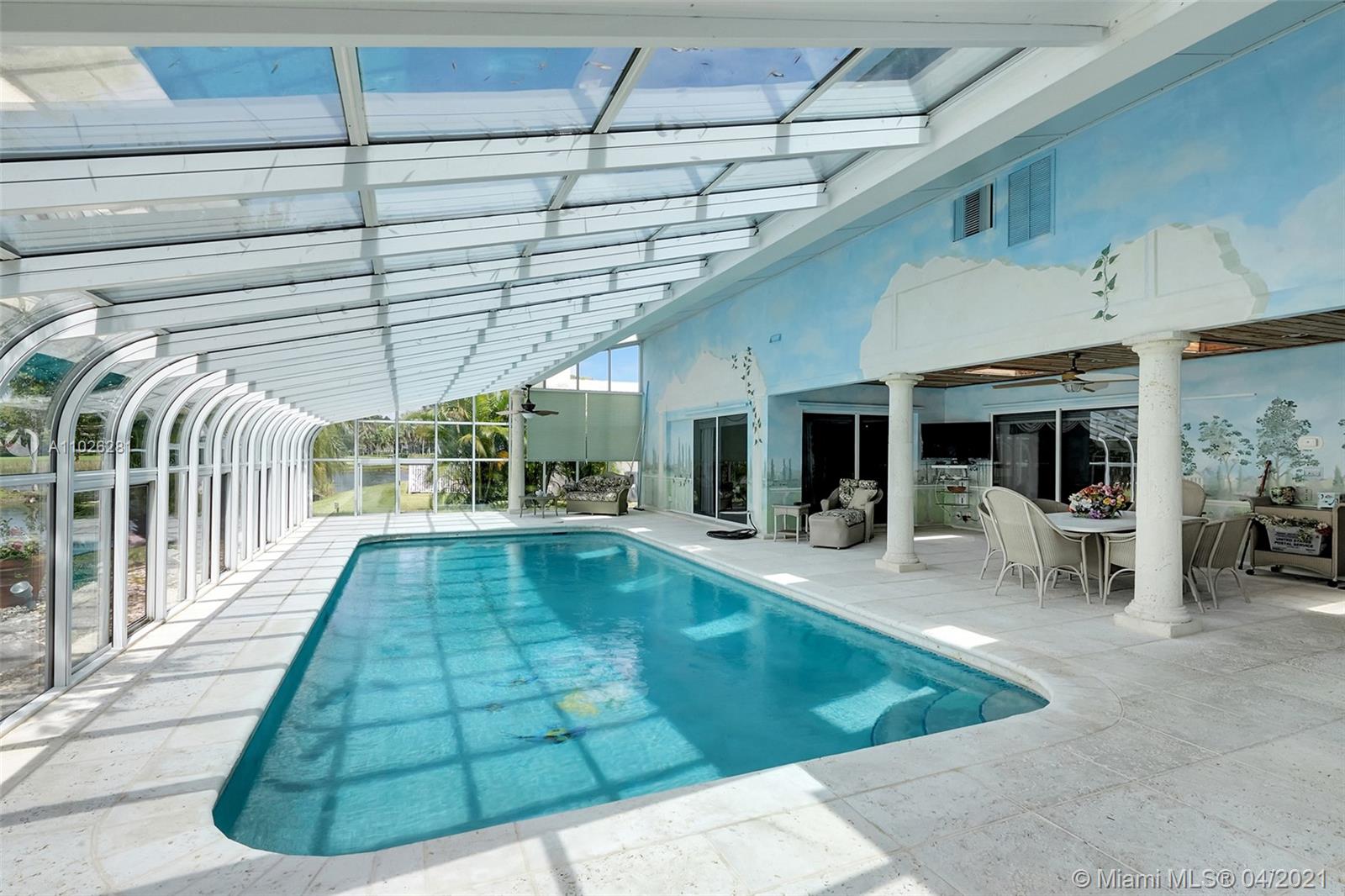 Home 4 sale in Jacaranda/Plantation. Over 4000sqft (perseller) 4/3 lakefront golf course home. Glorious outdoor entertaining area overlooks 2nd hole at Jacaranda Country Club. Beautiful mermaid mosaic diving size pool w/ new pump under a giant glass domed 1300sqft patio. Outdoor kitchen,refrigerator& huge covered seating area w/ AC for your outdoor pleasure. Huge super large bedrooms. 2 master suites. Sliders(but 1)are all pocket doors. Fabulous location on cul-de-sac dead end street. Xtra land purchased from golf course to water line. Access to golf course. New underground power lines, new AC w/ 10yr warranty, flat roof re-topped w/ 3yr warranty. Roof 12 yrs. Copper plumbing, floor safe, hurricane shutters, inside laundry room. Locking screen doors for entire garage. Some tlc needed.