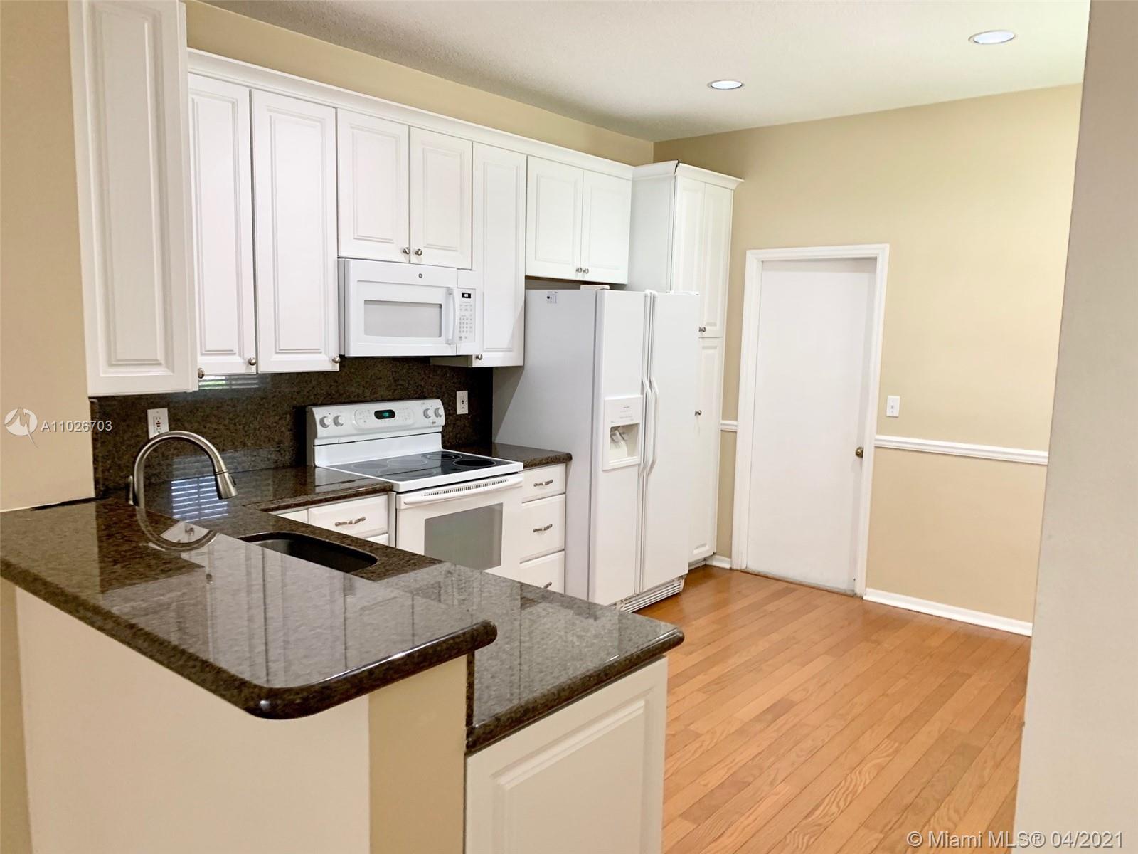 Beautiful and desirable 4 bedroom townhouse in Weston. Corner unit full of lights with extra side windows. Upgraded kitchen with tall cabinets and granite countertops. Laminate floors throughout including stairs and second floor. Upgraded vanity in secondary bathroom. Fans in all bedrooms. Accordion shutters in all windows. 1 garage and a half for extra storage. Next to guest parking for convenience. Seconds to the highway, grocery store and restaurants. A must see!