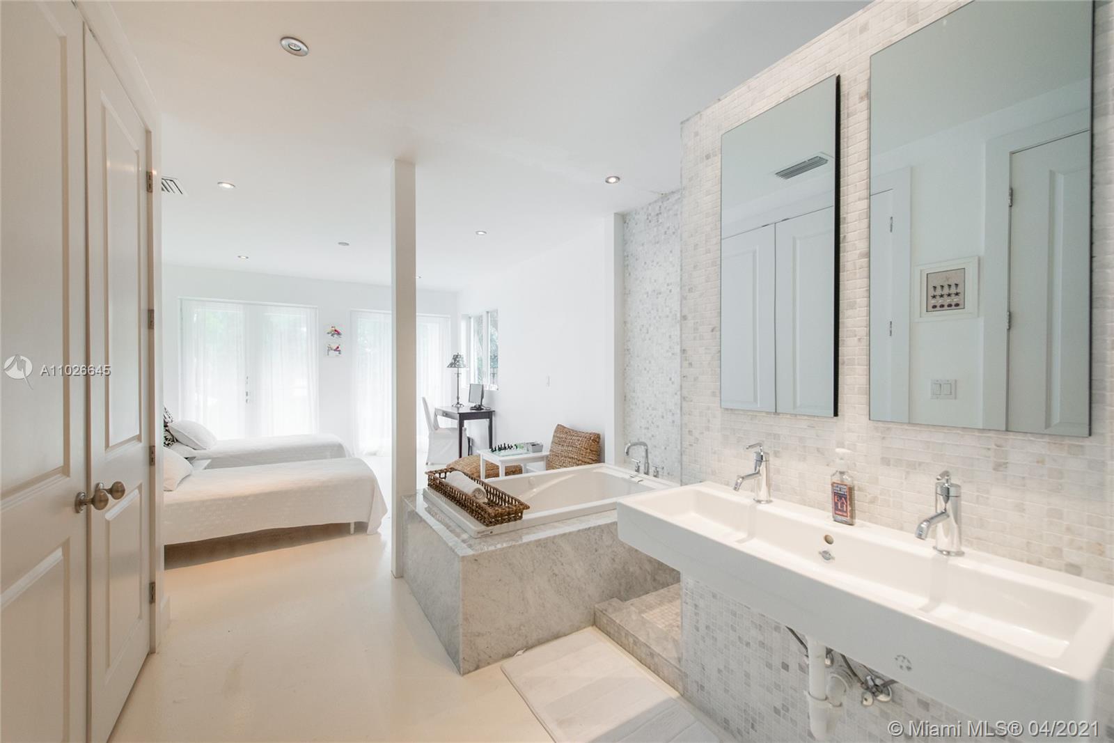 Lovely, walled & gated estate in lush South Coconut Grove. Custom built in 2004 by the current owners. Light-filled, open living spaces w/ wood-beamed vaulted ceilings, stone flooring & french doors throughout that overlook the tropical garden (10,422 SF lot) surrounding the home. Stunning kitchen features wood cabinetry, granite countertops, oversized built-in Subzero refrigerator, gas range & breakfast room. Luxurious master suite w/ sitting area and large bath with soaking tub & frameless glass shower. Ideal layout offers 1st level - 3 BR/2.5 BA (including the master) + office. 2nd level -1BR/1BA + bonus room, easily converted to a 5th BR. Ultra-private outdoor spaces feature covered terrace w/ fireplace & oversized pool for year-round outdoor living. Walk or bike to the village center