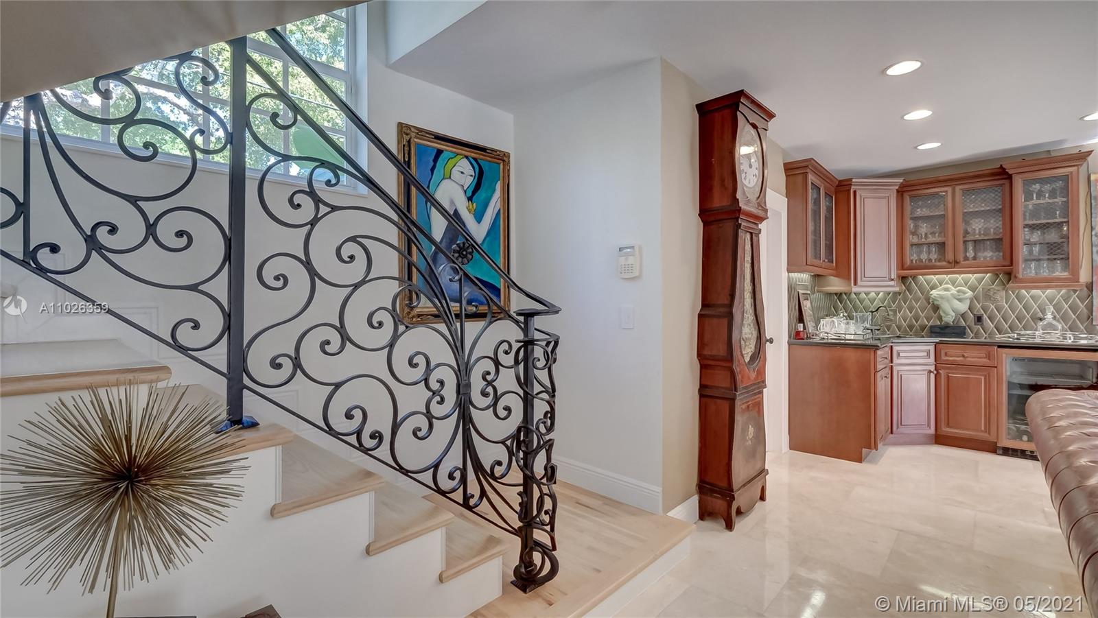 Coveted location in Platinum Triangle in Coral Gables. Spacious corner lot with exquisite Mediterranean style home. Beautiful features include a spacious dinning room with high ceilings, Large kitchen area with breakfast nook + Miele, Bosch, & Thermador appliances! Family room has fireplace and wet bar. Additional open office space- Library area for zoom meetings.. Primary bedroom suite is on second floor with a balcony view overlooking pool. Beautiful landscaped yard with inviting pool .The backyard feels like resort style retreat, great for entertaining. Home was updated in 2006 with additions. Renovations done 2018. Lovely and impeccable home that is spacious, light and bright. Excellent location close to South Miami and Coconut Grove.
