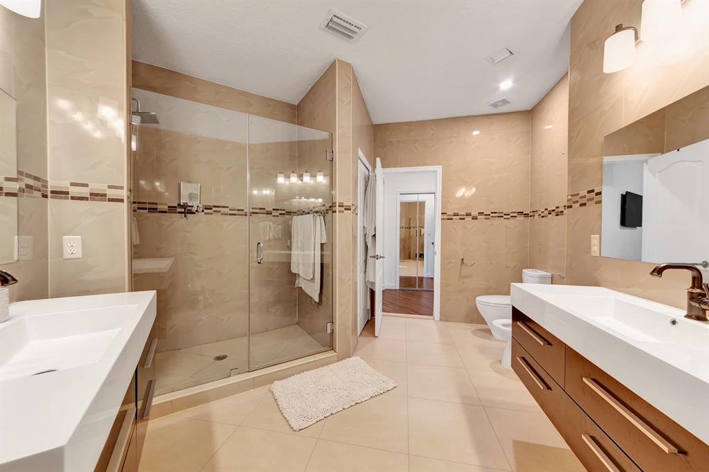 VIEW THE TOUR! This Gorgeous Home shows like a model! High gloss 32'' tile throughout the first floor, custom high quality kitchen with soft close cabinets, quartz countertops, farmhouse sink, top of the line black stainless steel appliances, new 5 ton AC, modern bathrooms, interior and exterior freshly repainted with high end paint from Sherwin Williams. The list goes on! This move-in ready property features accordion shutters and beautifully paved patio with reinforced fence and more. Great school district within walking distance, easy access to highways, shopping, banks, and restaurants. Enjoy being a part of the desirable community of Islands of Doral with a club house, 2 swimming pools, gym, playground, basketball, and tennis courts.