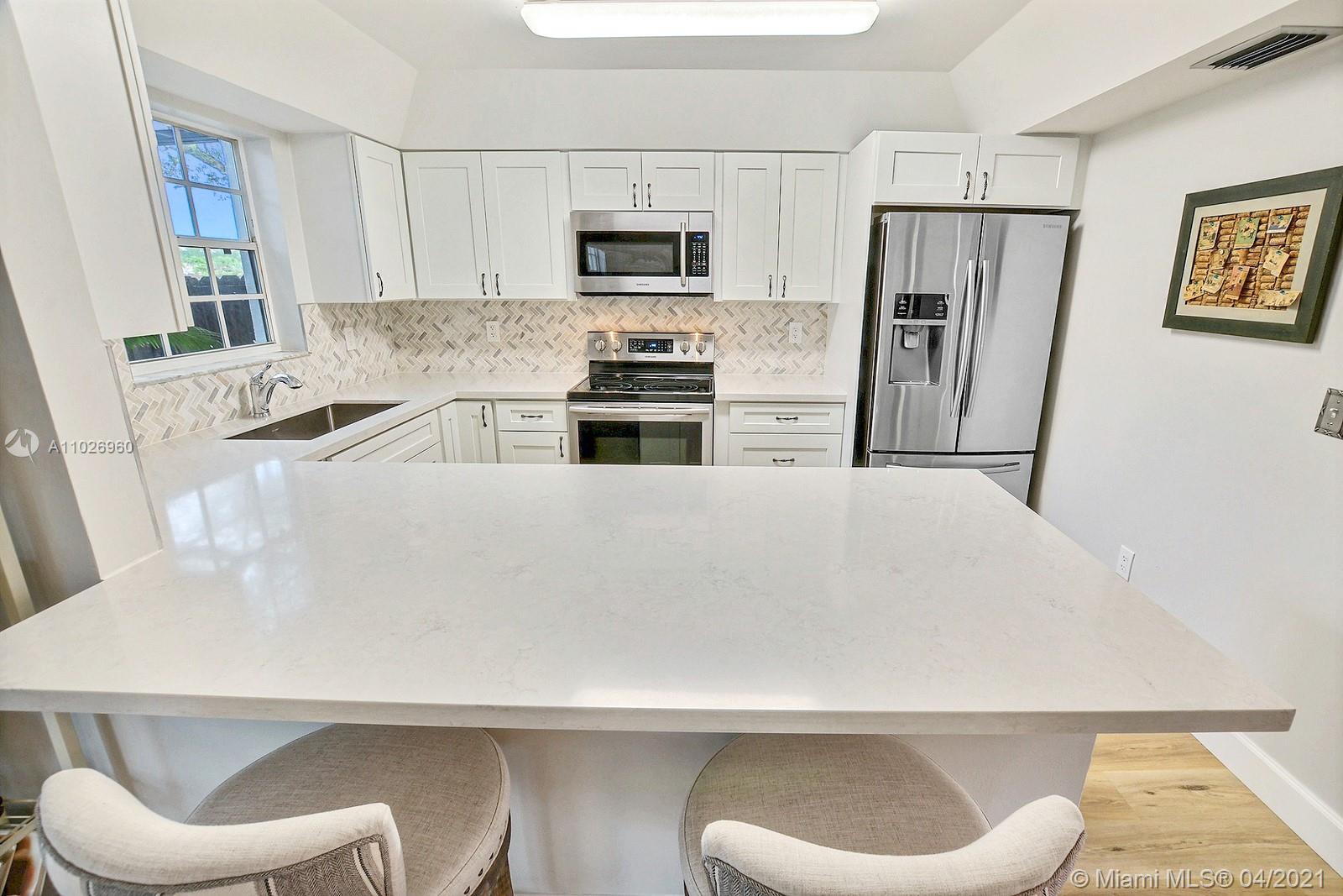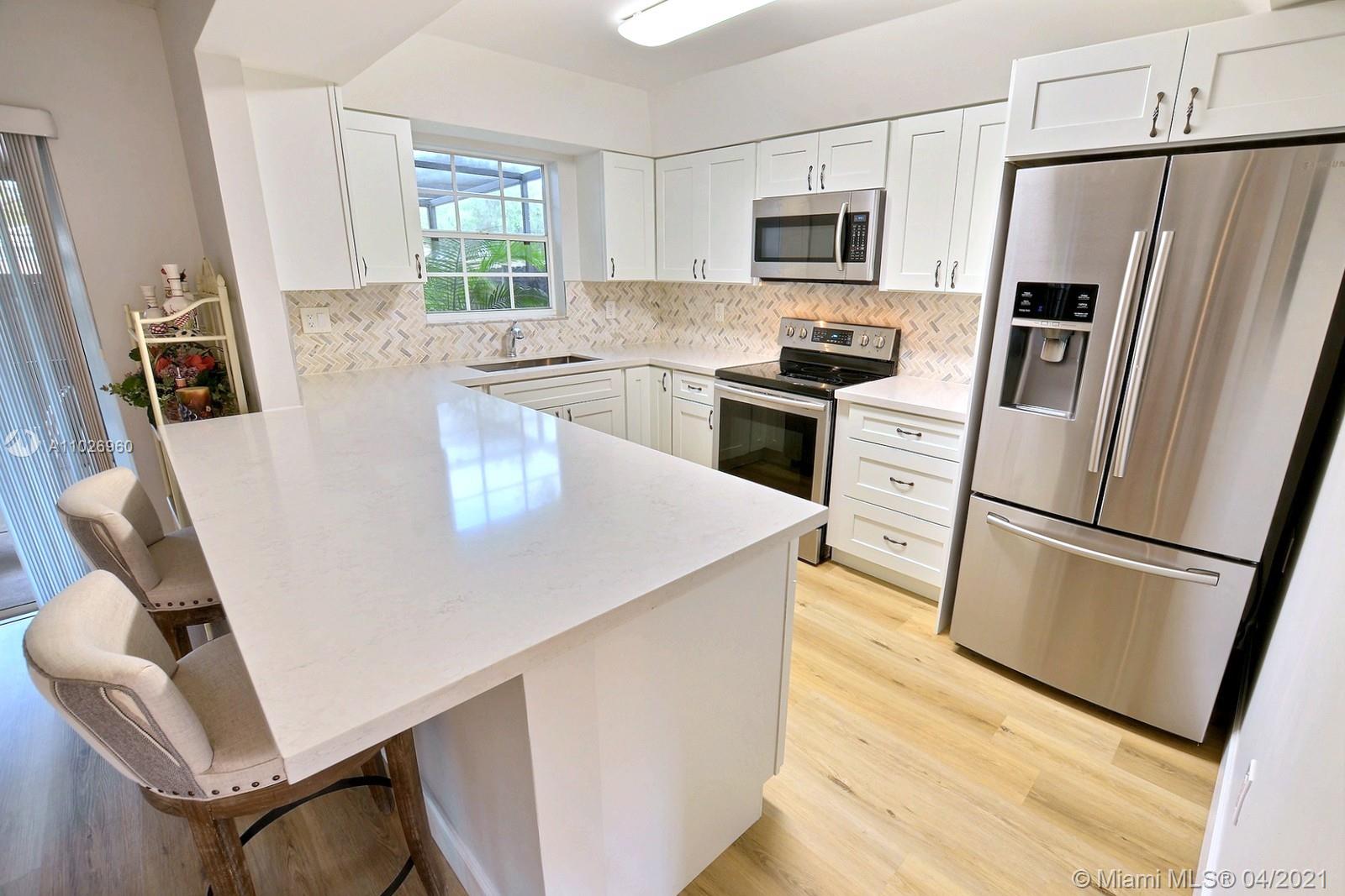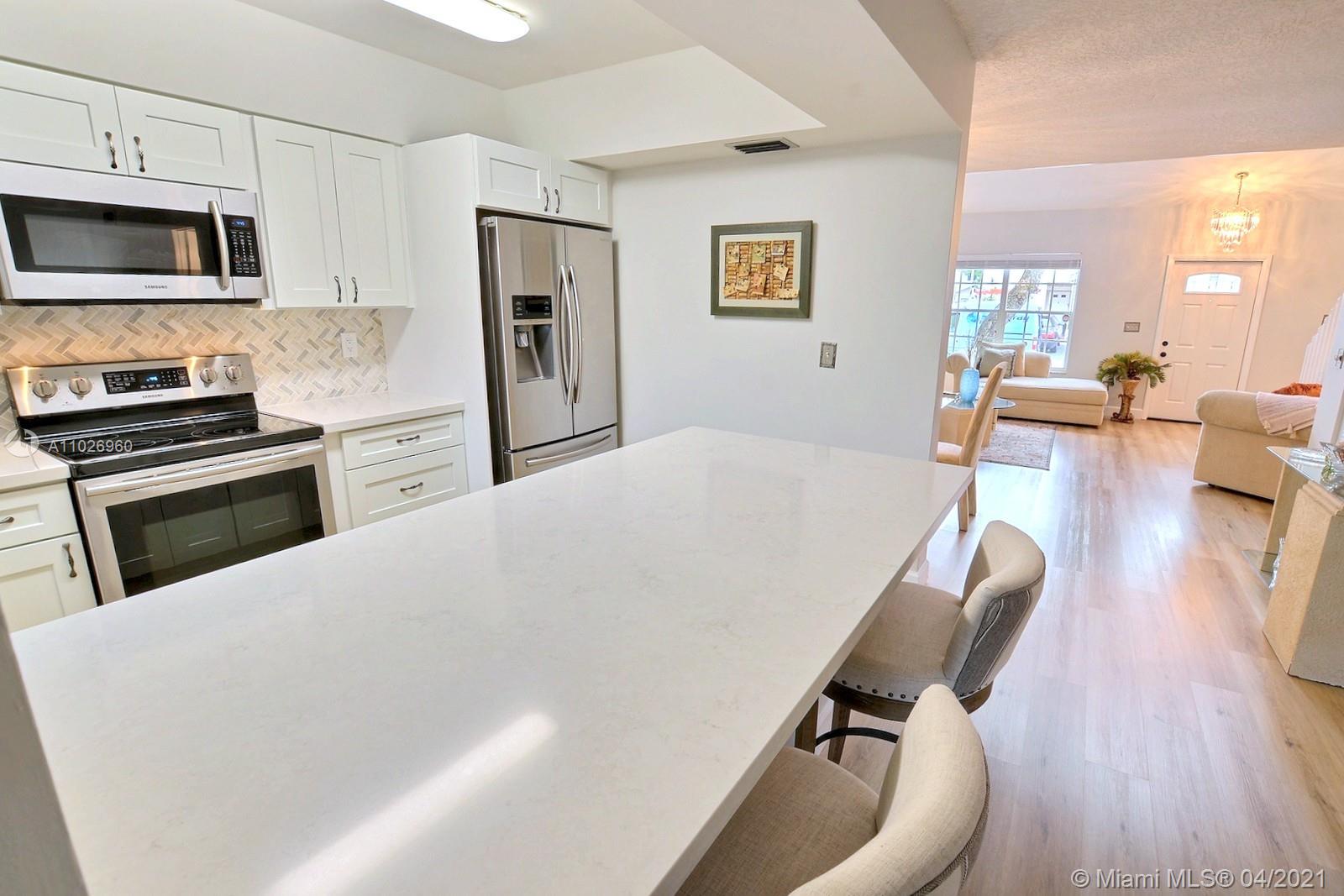 ABSOLUTELY SPECTACULAR 3 BED, 3 FULL BATH COOPER CITY, CORNER TOWNHOME RECENTLY UNDERWENT A MODERN HIGH-END REMODEL. SPACIOUS TOWNHOME WITH 1,786 SF OF LIVING AREA. LIGHT AND BRIGHT, OPEN AND AIRY LIVING SPACES ARE ACCENTUATED BY TWO-STORY HIGH CEILINGS LINED BY WINDOWS AND AN ELEGANT STAIRCASE. ENJOY TASTEFUL DECOR THROUGHOUT INCLUDING STUNNING MODERN PLANK FLOORING. DREAMY WHITE KITCHEN OFFERS STYLISH SHAKER CABINETS TOPPED WITH QUARTZ COUNTERS. THE LOOK IS COMPLETED BY A STYLISH BACKSPLASH AND STAINLESS STEEL APPLIANCES. SPACIOUS PRIMARY SUITE HAS STUNNING ENSUITE BATH. PERFECT FOR ENTERTAINING THE OVERSIZED SCREENED PATIO IS BORDERED BY A PRIVACY FENCE. FRESHLY PAINTED, 1 CAR GARAGE + 2 SPACES. INCREDIBLE LOCATION IN FLAMINGO GARDENS IS CLOSE TO I-75, SHOPS, AND RESTAURANTS.