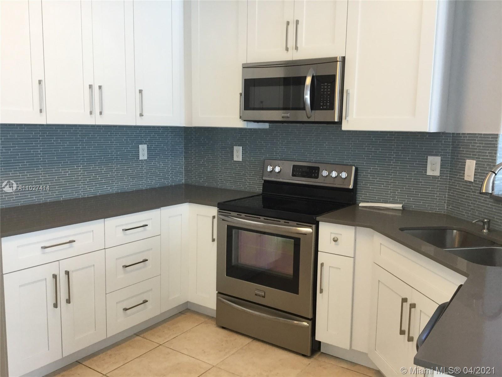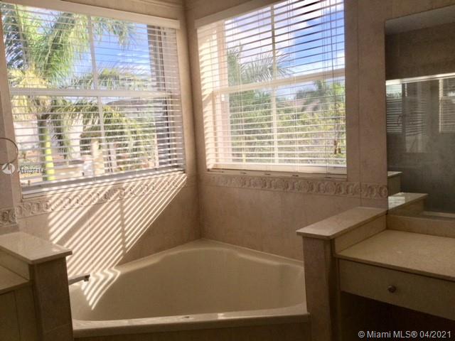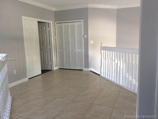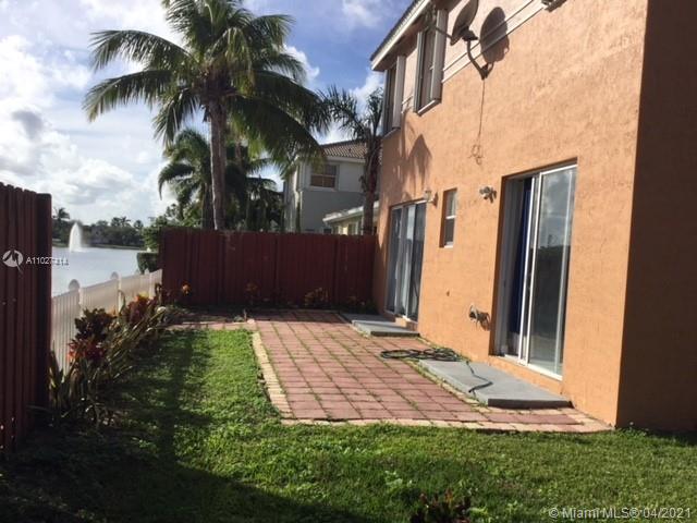 Beautiful corner home with spectacular high ceilings. Spacious kitchen features stainless steel appls, quartz, countertops,Wood floors on second floor. Huge master suite with sitting area, walk in closets, 2 more bedrooms & bathroom upstairs and the 4th bedroom with full bath downstairs, guest bath, family room, 2 a/c units, accordion shutters on the second floor, 2 car garage, low HOA. Larga side backyard ideal for entertaining or just relax and enjoy the lake view.
