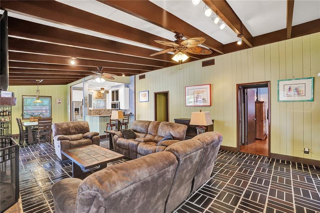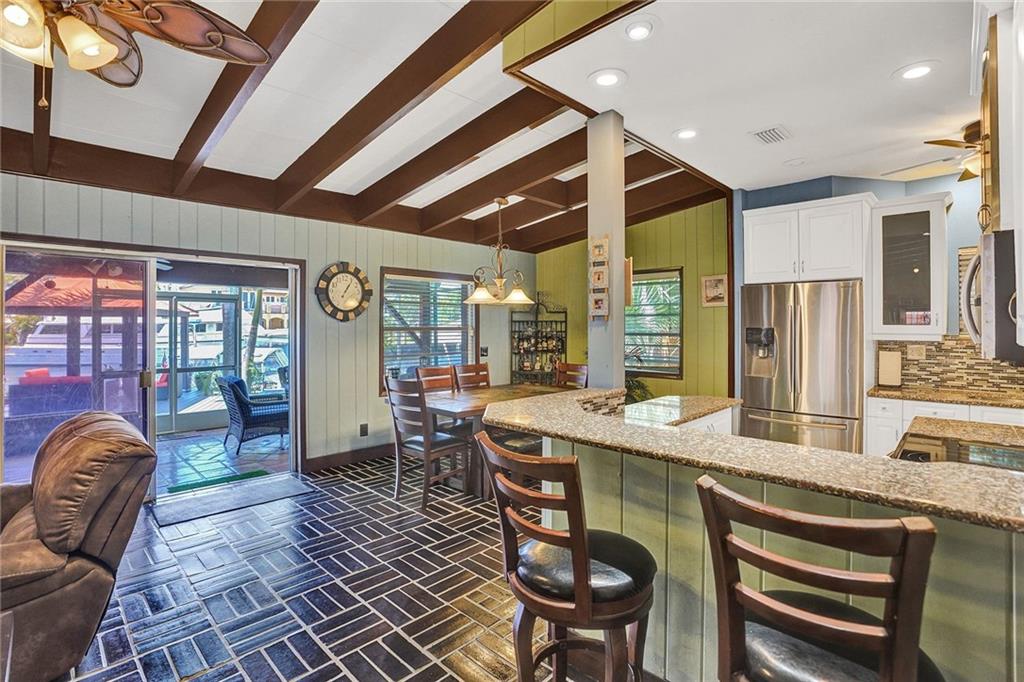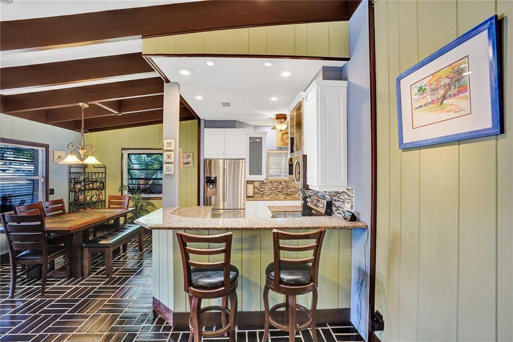 Tropical Waterfront Paradise on the North Fork of the New River in Sought After Sailboat Bend. Vaulted Exposed Beam Ceilings, Updated Open Kitchen, 2 Bedrooms Plus a Den. 2 Baths, with a Walk- in Steam Shower, & a Whirlpool bath. New commercial grade washer & dryer, tankless water heater. Big Screened Porch overlooking the River. The Back Yard Oasis has new turf(maintenance free)new Trex dock & deck(20yr warranty) New Gazebo.60 ft of Waterfront No Fixed Bridges. Secluded, Private Entry with Electric Gate, the home is set back 100+ft from the road w/paver driveway. Detached 357sf Garage. Feel like you stepped back in time to Old Florida while living minutes to all of the Downtown Ft Lauderdale Amenities. Walking Distance to the Performing Arts Center, Restaurants & Entertainment District