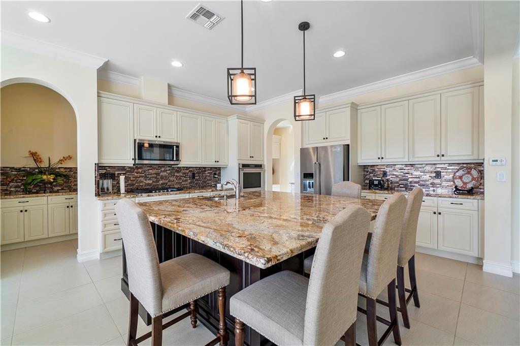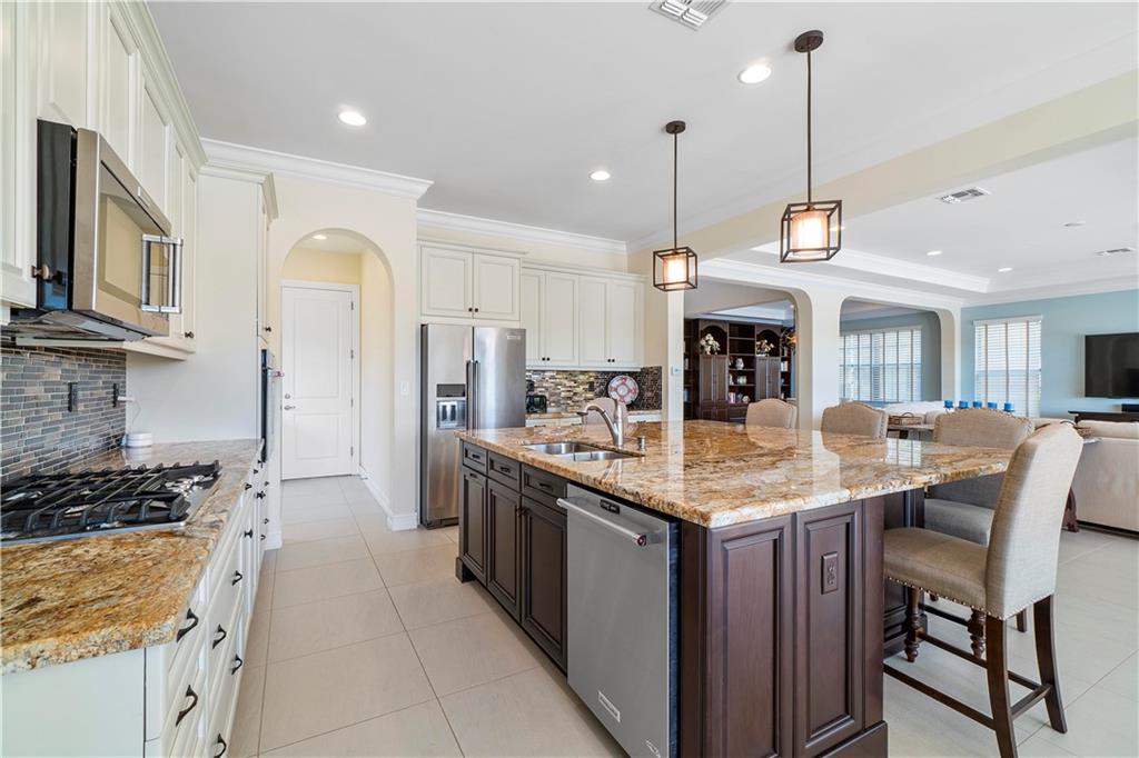 This beautiful Ashby model is located on a tranquil lot with water & preserve views! Features include an open floor plan with a Foyer entrance, formal and casual dining, a great room, mud room & a huge bonus room! The kitchen offers white cabinetry, a huge island, granite counters, glass tile back splash, a walk-in pantry, pendant lights and SS appliances. There is 20" tile in the main living areas, custom built-ins, crown molding, smooth walls & ceilings and recessed lighting! The Master Suite has tray ceilings, a balcony, built-in closets & a luxurious bathroom! Enjoy the covered lanai, the heated pool and stunning water views! This community offers a state of the art clubhouse, amazing amenities, low HOA fees, gated security & great schools! This is South Florid living at its best!