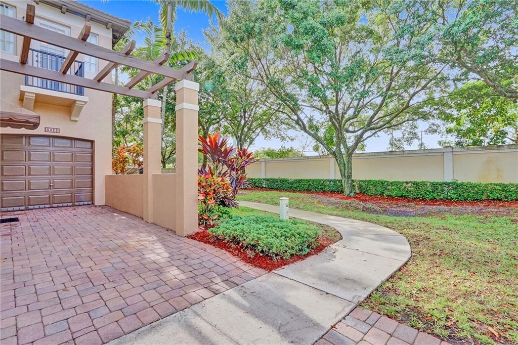 Charming corner townhouse nestled in the highly desired, Cimarron of Davie. This south Florida jewel boasts 3 bedrooms, 3 FULL baths, open loft, plus a bonus room that can be used as 4th bedroom. One bedroom and one full bath located on first floor. Galley kitchen complete with granite counters and stainless refrigerator. Open floor plan, light and bright, with exquisite hardwood flooring and stylish zebra blinds throughout. Upstairs bedrooms have blackout shades. Fabulous outdoor space with fruit tree and large fenced-in patio ideal for Floridian entertaining, or kids and pets at play. One car garage, plus additional parking in driveway. Community boasts pool and child play area. Minutes from shopping, schools, and scenic parks. TOP RATED SCHOOLS.